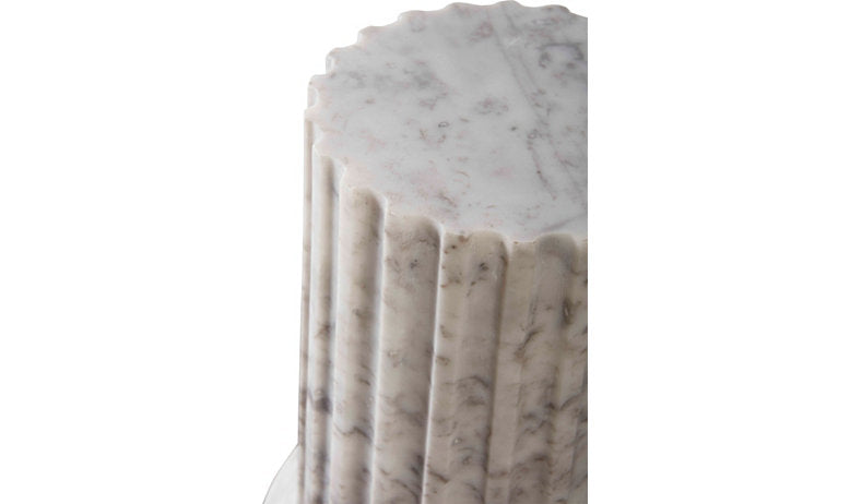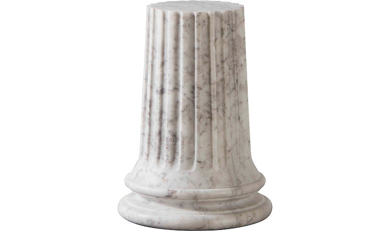 The Icon Table is classic Grecian architecture for the modern era: a sculptural form of carved Carrara marble complete with fluted columns. It punctuates any space with a bold nod to classicism and can be clustered in groups or float as a standalone perch.