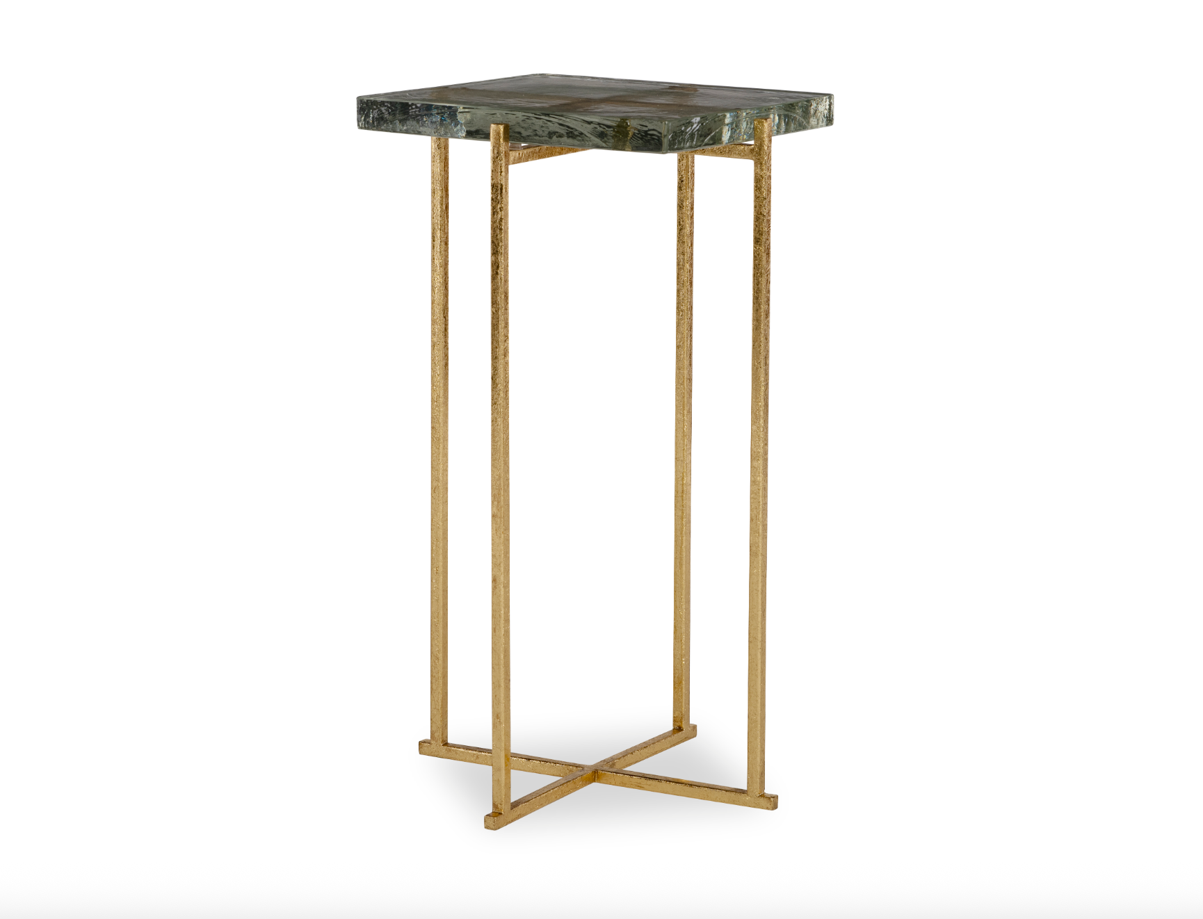 - Cast glass top with a gold-leaf metal base