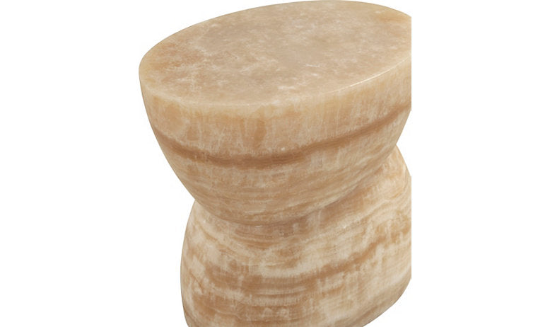 Handcrafted with a sensual and organic form, the Slope Spot Table is designed to reveal the unique color and character of honed Honey Onyx, offering a modern look that will become the jewel of any room.