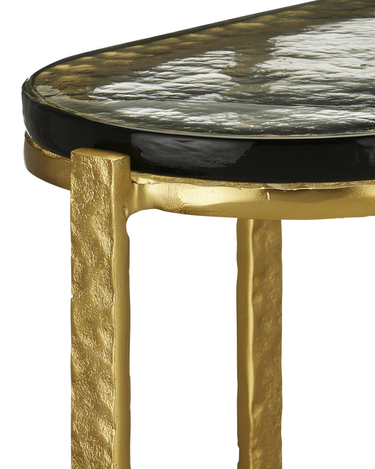 The point at which art and fine craftsmanship meet is where the Gold Side Table resides. Made of cast aluminum poured into a hammered mold to create even greater texture, the gold side table is topped with a cast glass top that is equally textural and luminous. This table will be a piece of jewelry in a space.