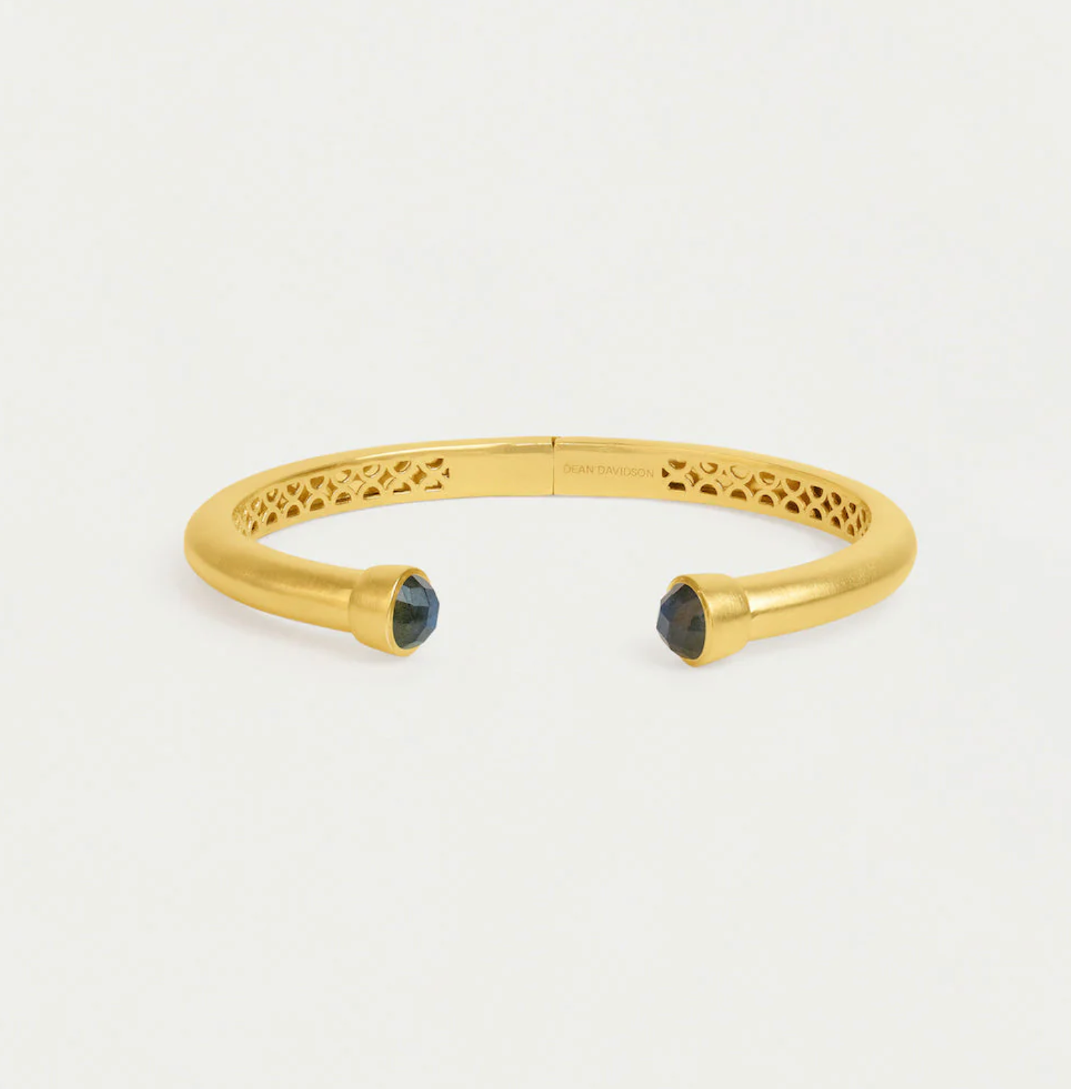 Double the impact with two hand-faceted gemstones, each punctuating the end of a brushed-gold open cuff. Featuring a hidden hinge and lightweight feel, it’s easy to pop on and keep on all day and night.