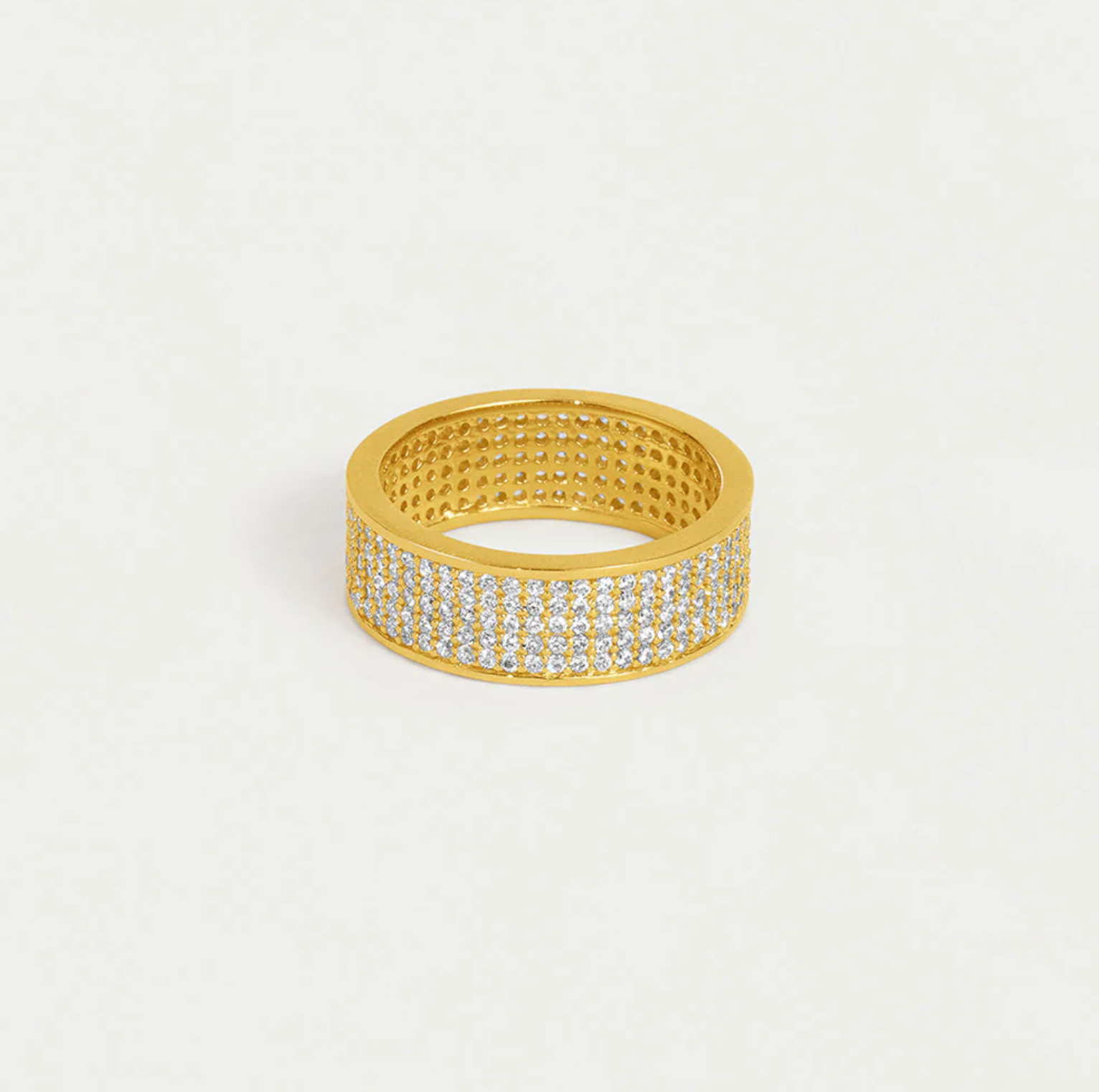 Add instant glamour to your stack with the Cubic Zirconia-adorned Petit Pavé Thick Stacking Ring, complete with 5 rows of hand-faceted stones.