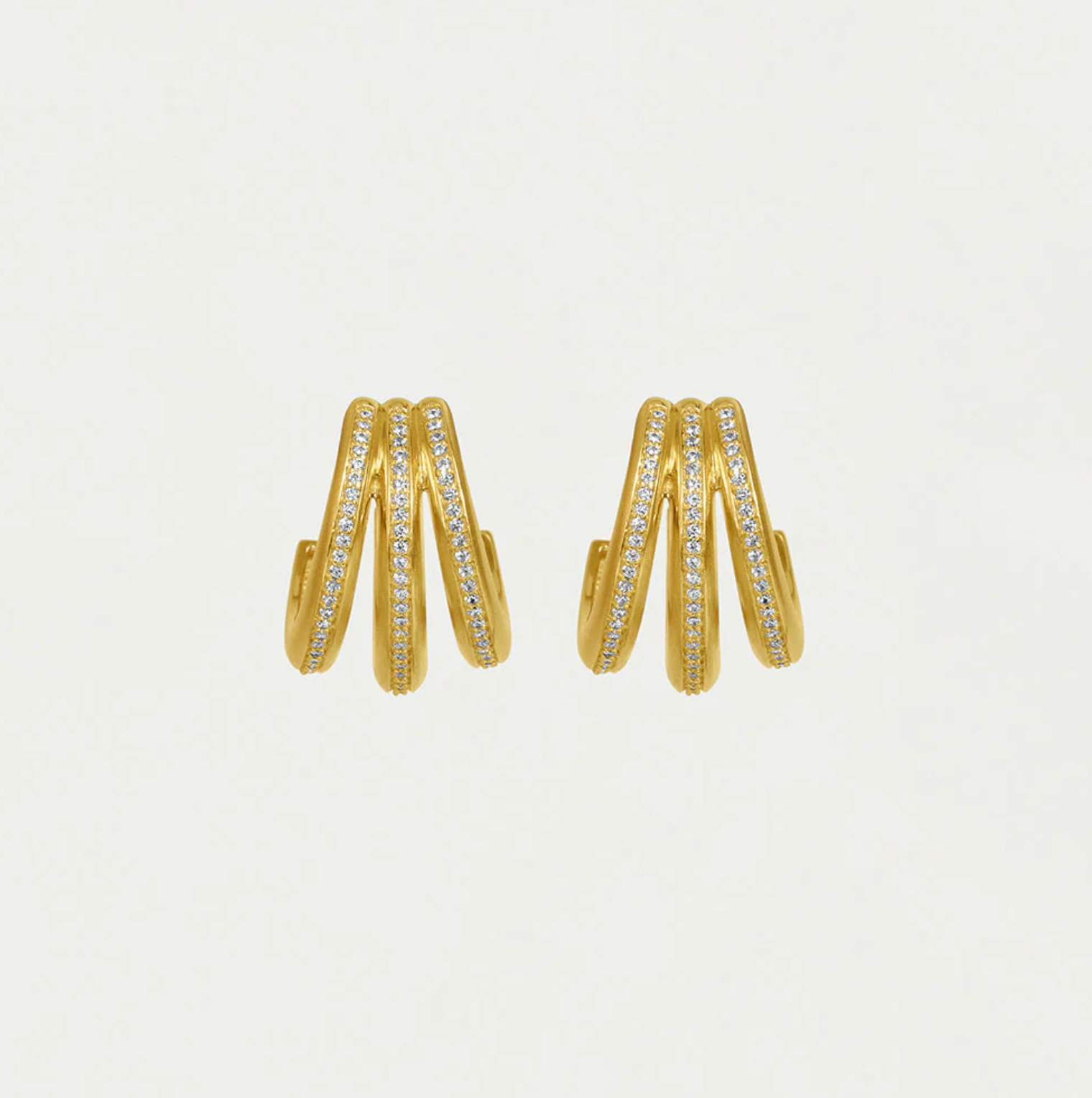Create the illusion of a fully stacked lobe with these handcrafted hoops. With a thin row of pavé accentuating each arch, these lightweight earrings serve triple the impact.