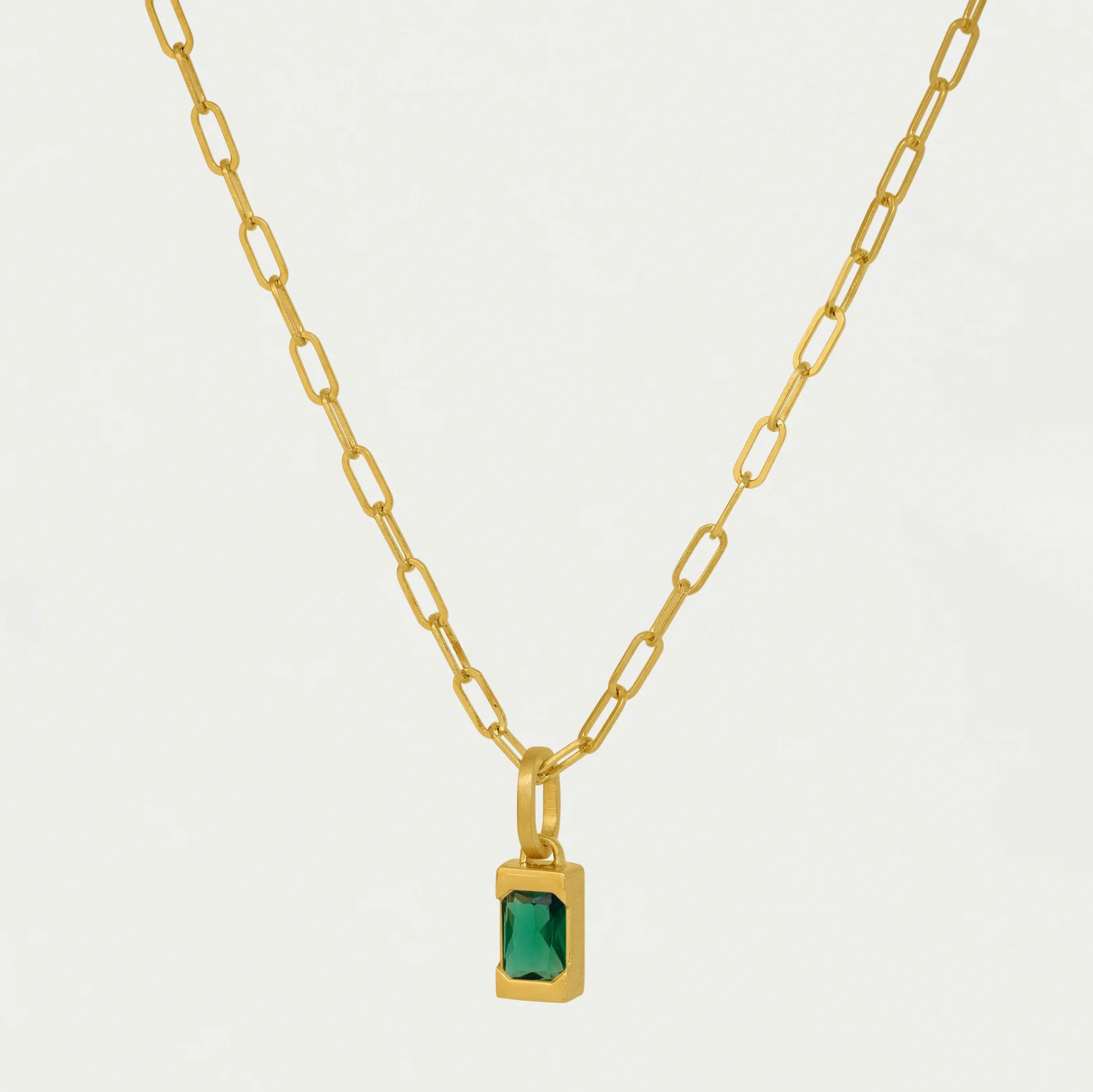Add some color to your necklace game with a baguette gemstone that represents your birth month (or mood!). Featuring a minimalist setting and a modern paperclip chain, it's a versatile piece with endless styling potential.