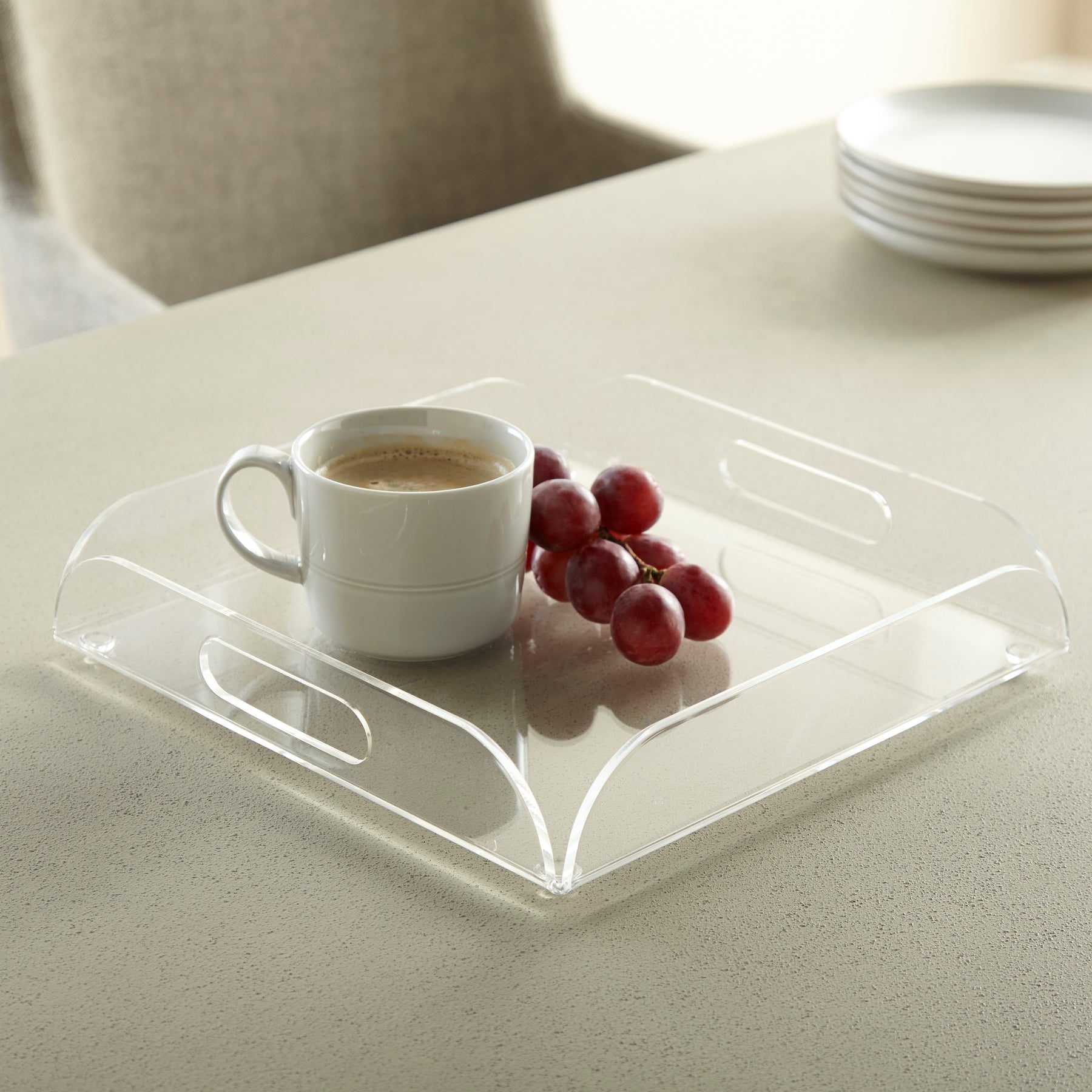 A wonderful acrylic tray with handles.