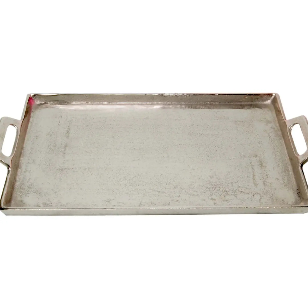 TRAY ALUMINUM WITH HANDLES RAW NICKEL
