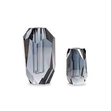 VASE SMOKE CLEAR ART GLASS HAND CUT