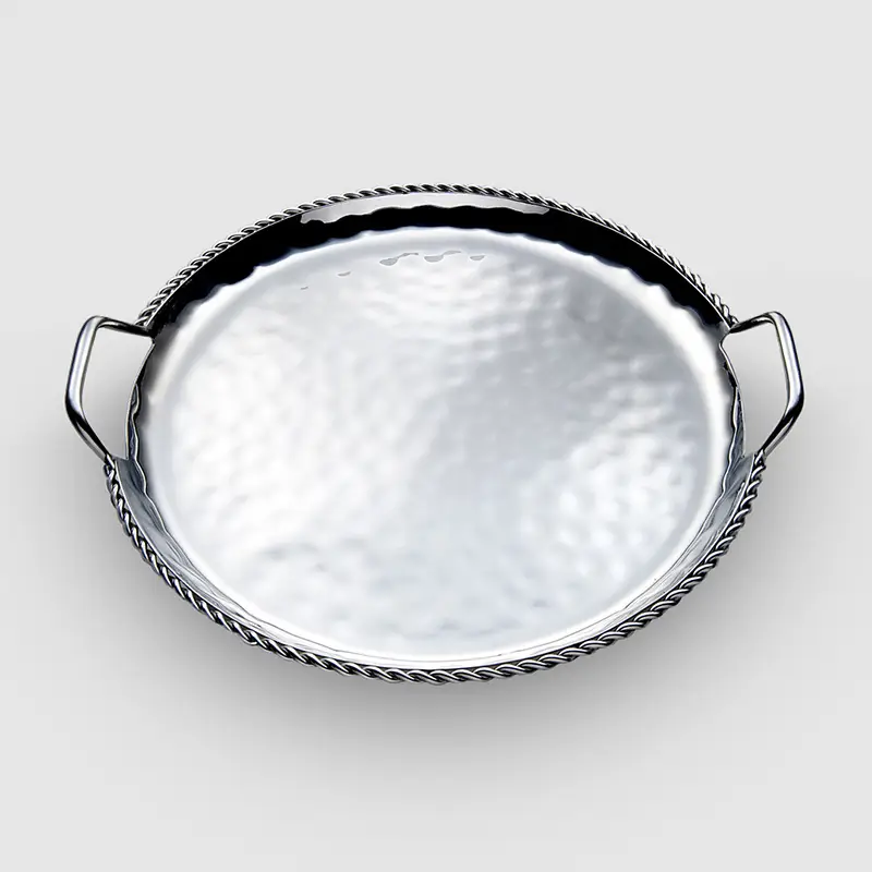 TRAY ROUND WITH BRAIDED WIRE & HANDLES 16.5" #24856