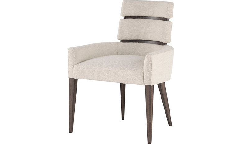 The Milano Arm Chair is inspired by the modern spirit and fashion-forward culture of the city of Milan. Horizontal bands of upholstery are stacked along its oak frame, turning a classic silhouette into a new and modern creation.