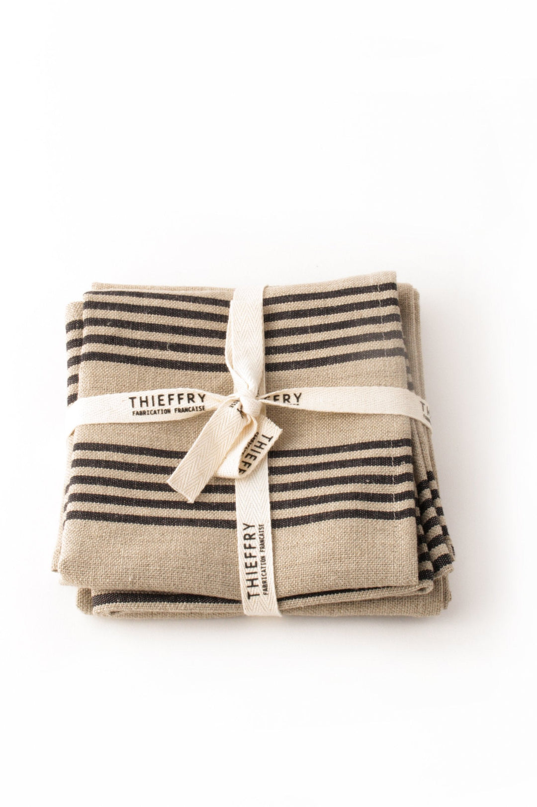 DISHTOWELS LINEN BLACK STRIPE & NATURAL S/3