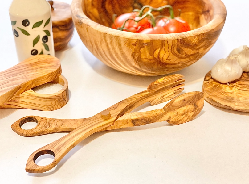 SERVING SET SALAD OLIVE WOOD