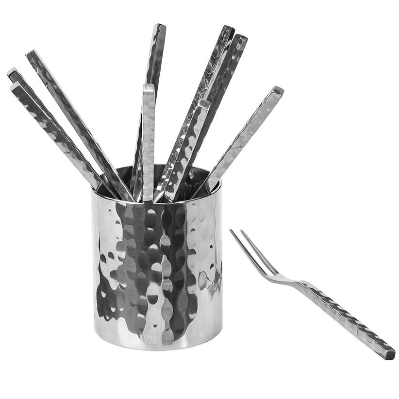 APPETIZER SQUARE FORK SET STAINLESS STEEL HAMMERED