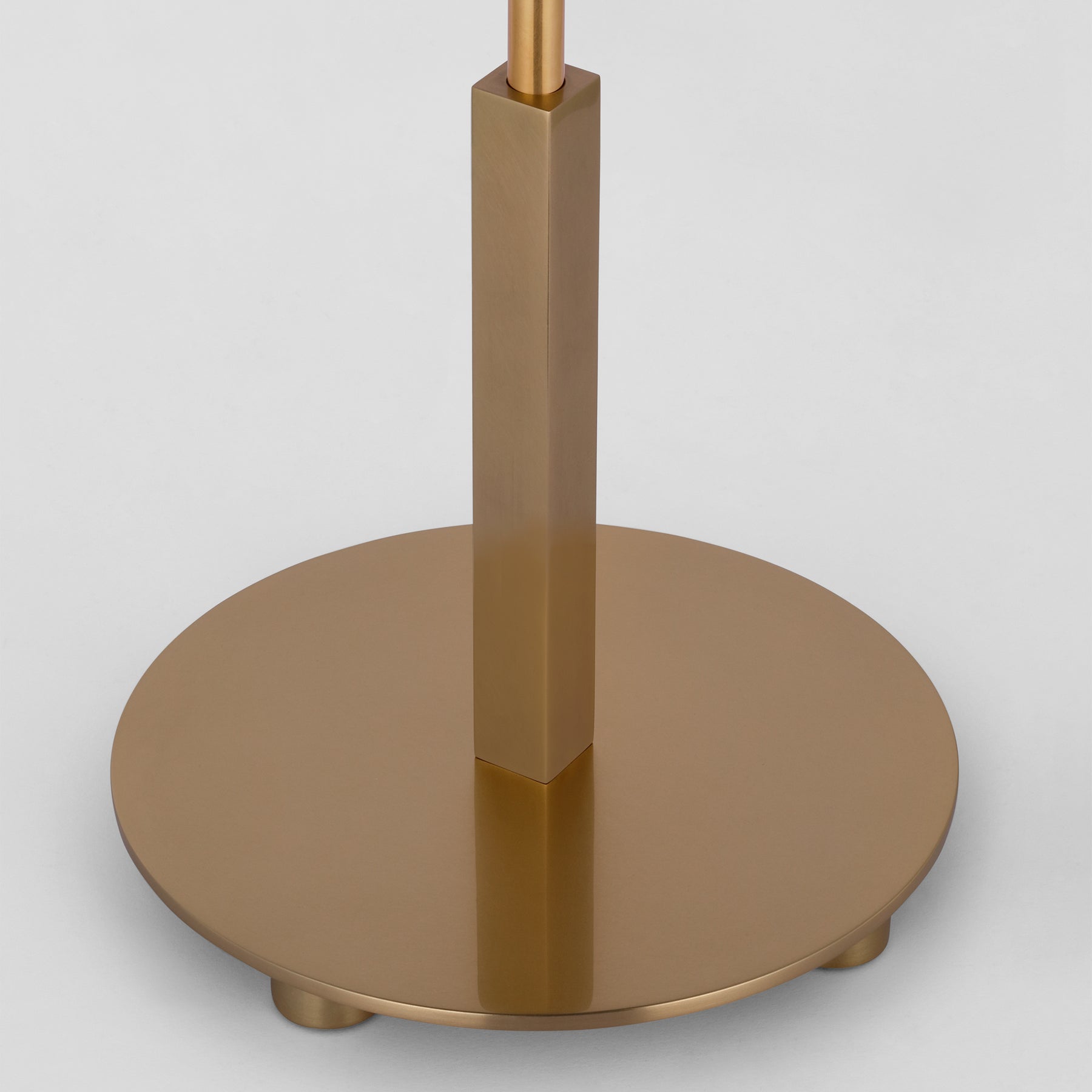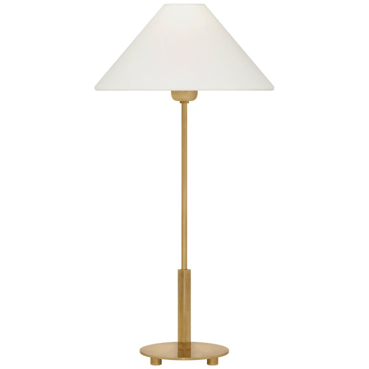 Buffet Lamp in Hand-Rubbed Antique Brass with Linen Shade.