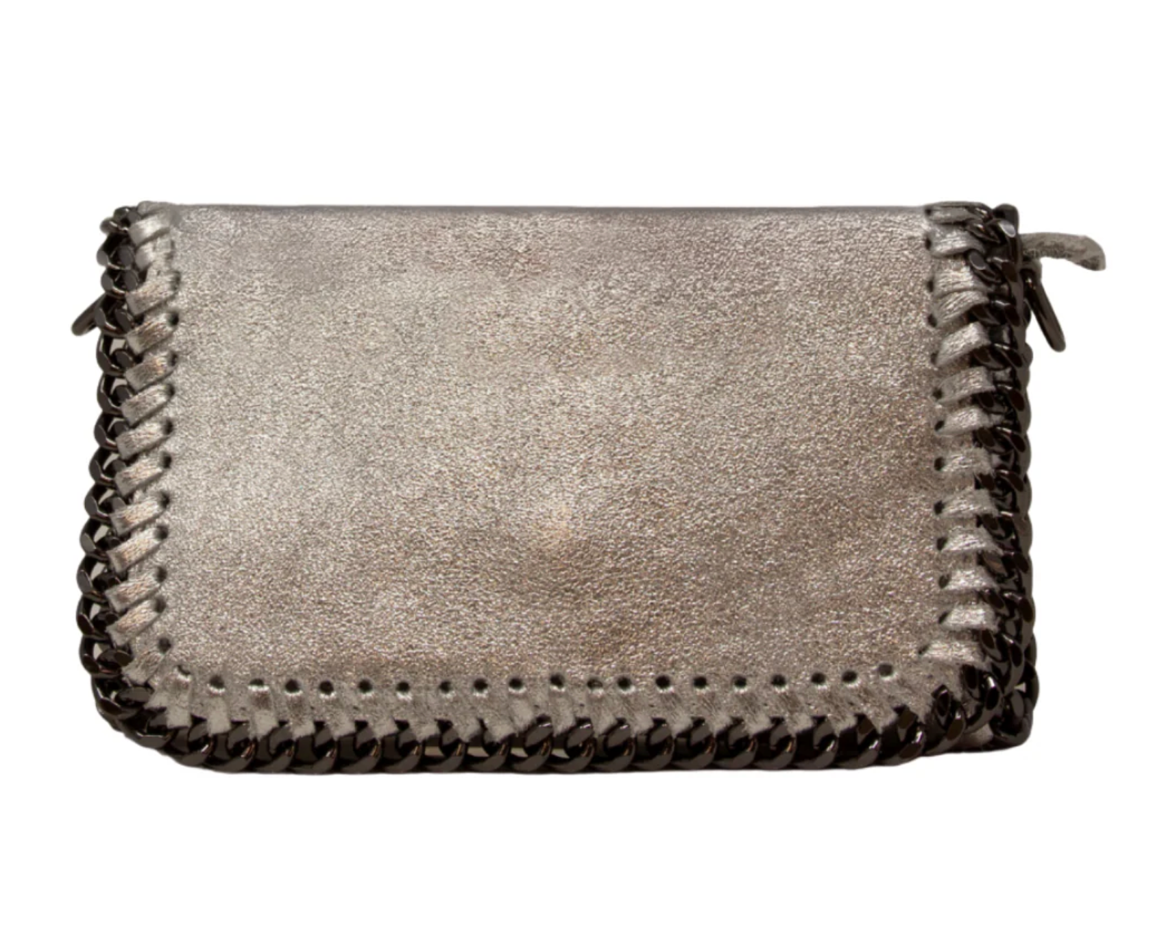 Clutch and crossbody crafted from Italian Leather with stunning black chain detail. Comes with a chain shoulder strap.