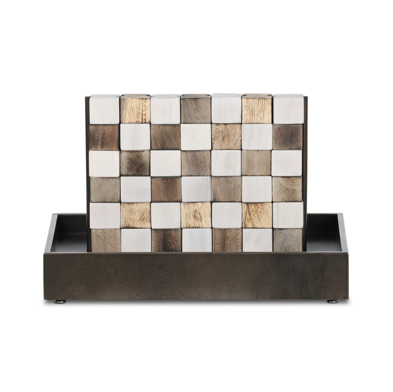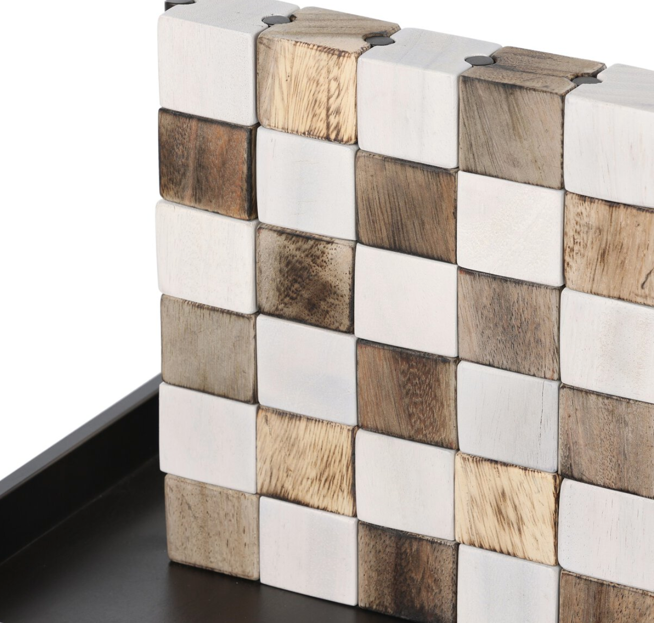 Decorative and functional, this eye-catching game of Four in a Row is crafted of solid recycled wood and iron in a rustic finish. With its geometric lines and clean shape, box can easily rest on a coffee table or shelf as decorative display.
