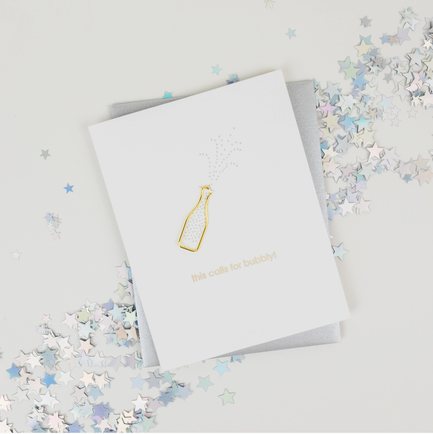 Our "This Calls for Bubbly" card is letterpress printed on a vintage printing press in sunny California. Card includes a heavy duty bottle paper clip.