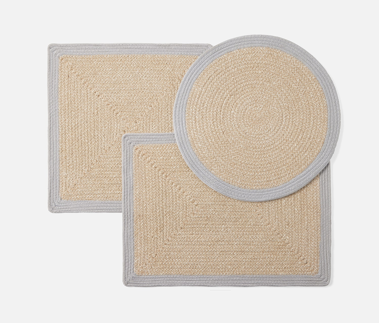 Two colors of cotton jute are texturally woven in this placemat, giving it a rustic charm and two-tone aesthetic.