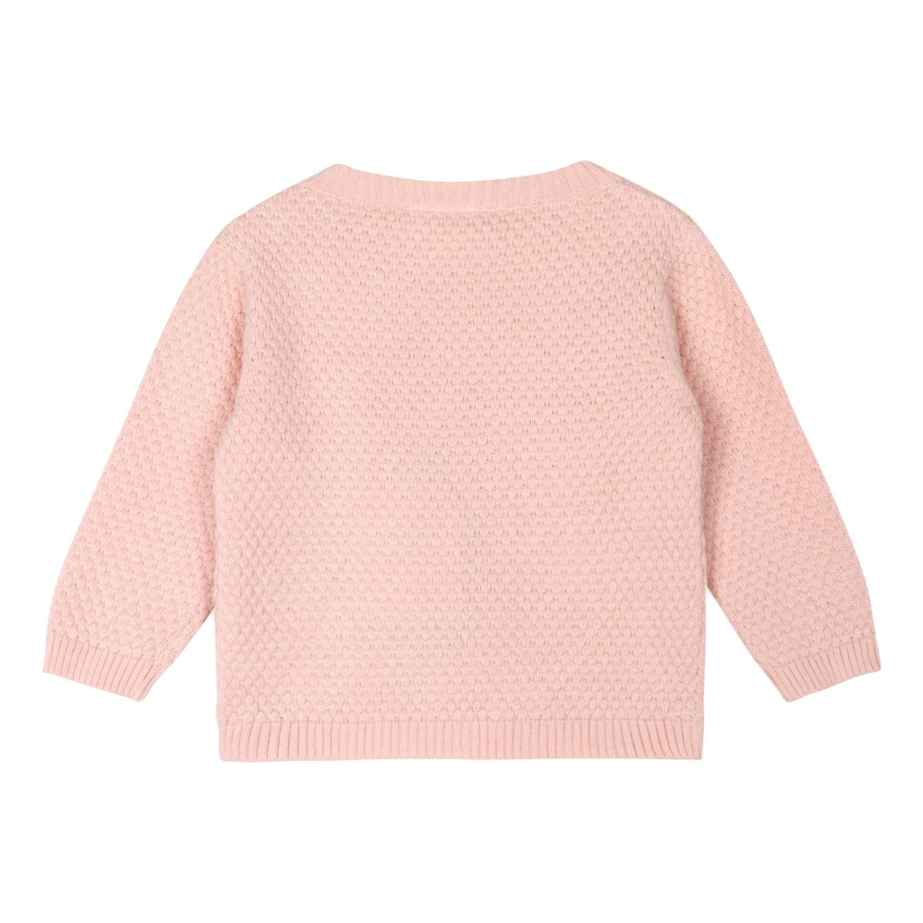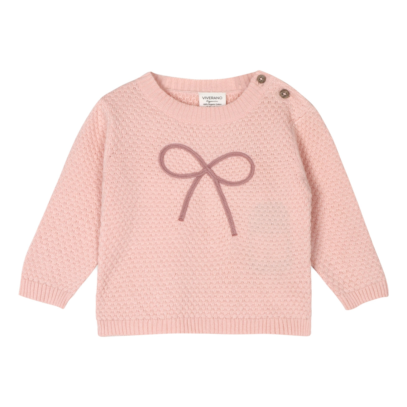 100% organic cotton chunky sweater knit baby pullover with a bow.