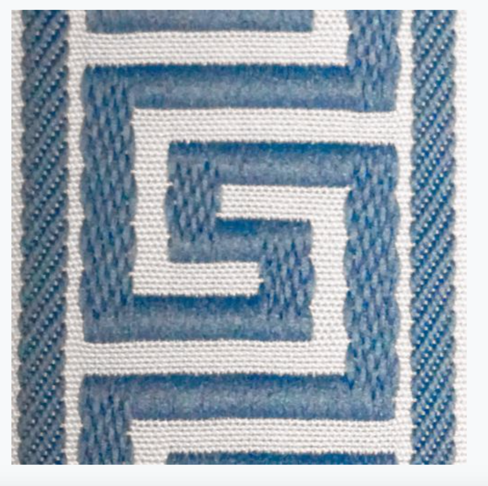 LUGGAGE RACK-WHITE FRAME WITH WHITE & SKY BLUE GREEK KEY STRAPS #20789