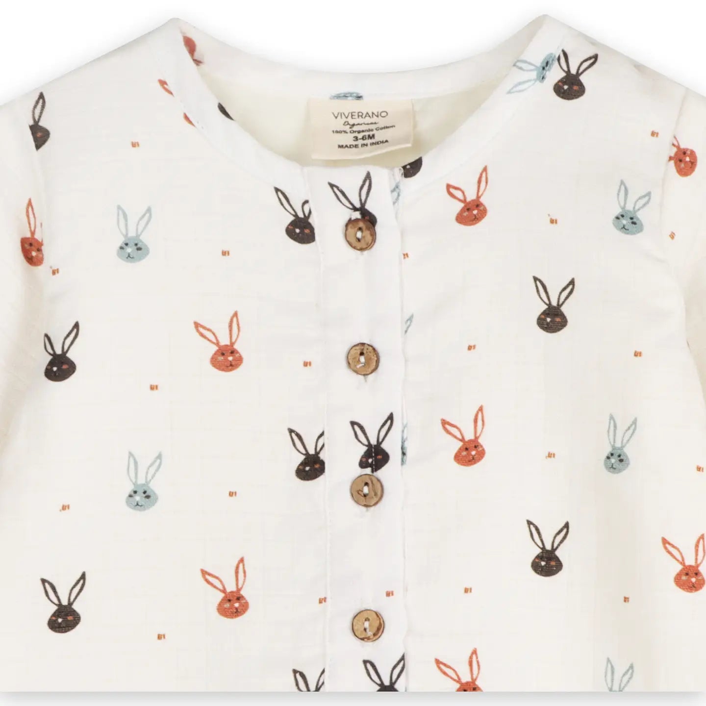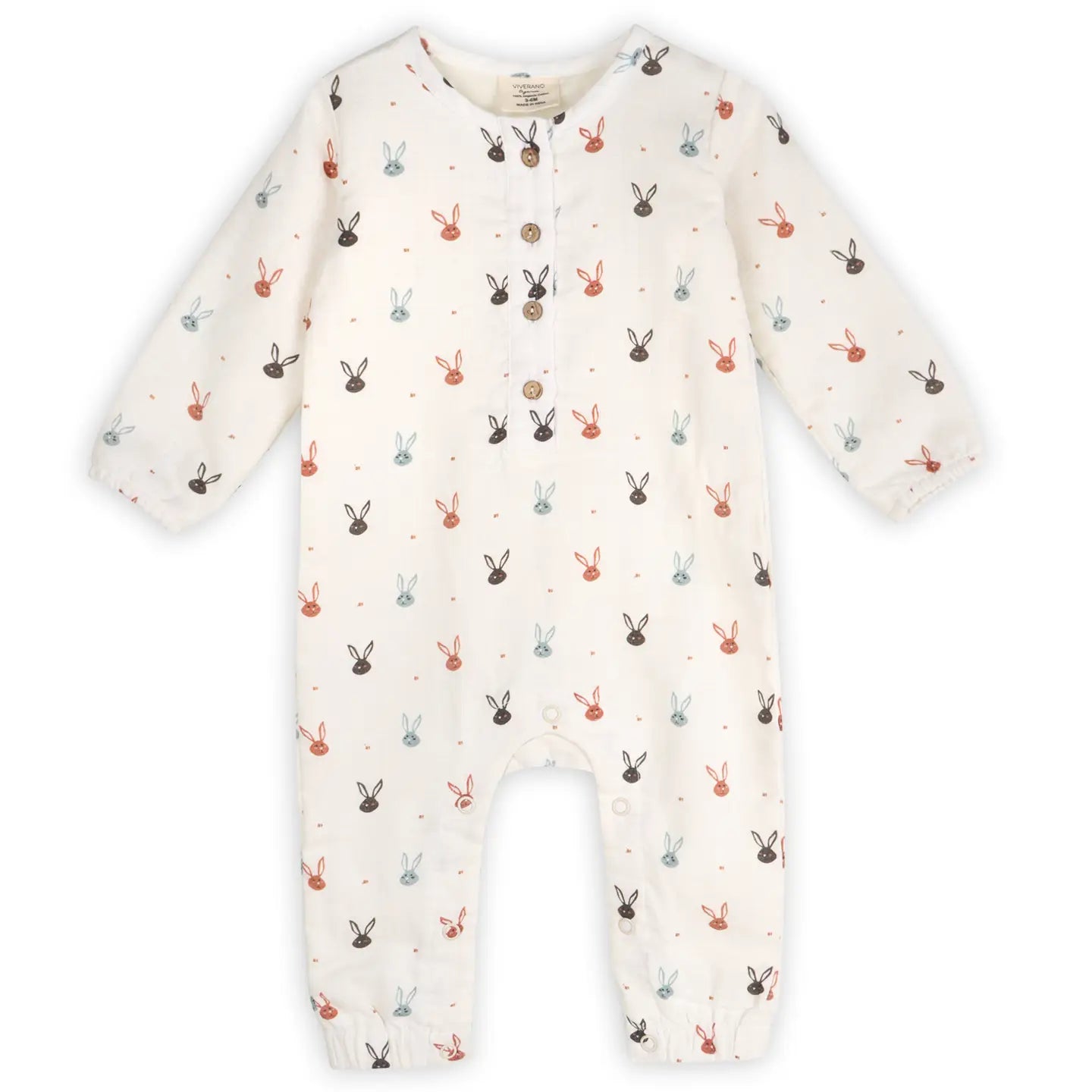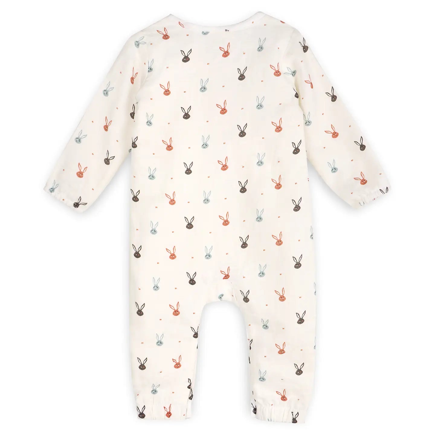 Long-sleeve organic muslin jumpsuit coverall for babies.