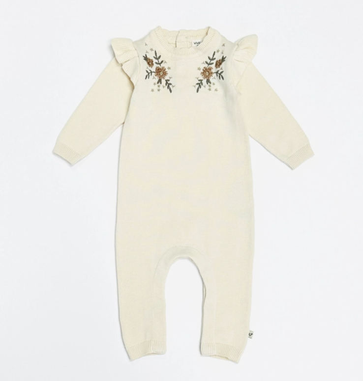 JUMPSUIT FLORAL RUFFLE KNIT CREAM