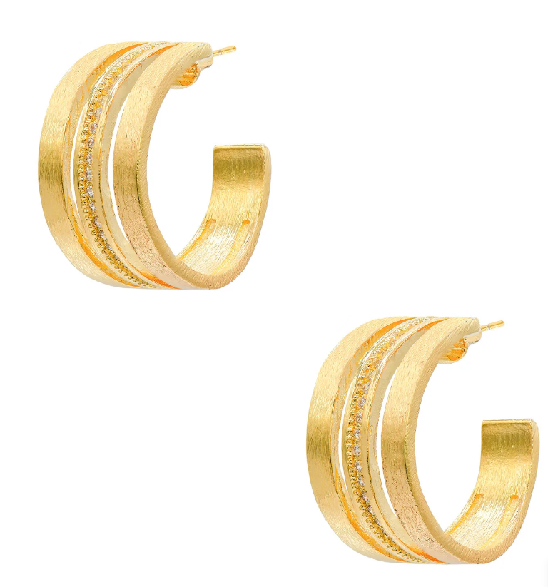 EARRINGS GOLD HOOPS WITH CZ BANDS #73144