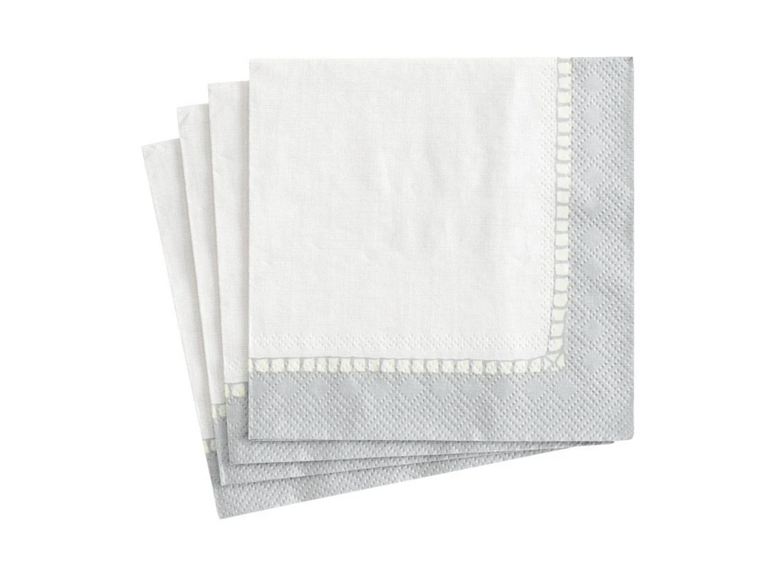 NAPKIN COCKTAIL LINEN BORDER SILVER #27657