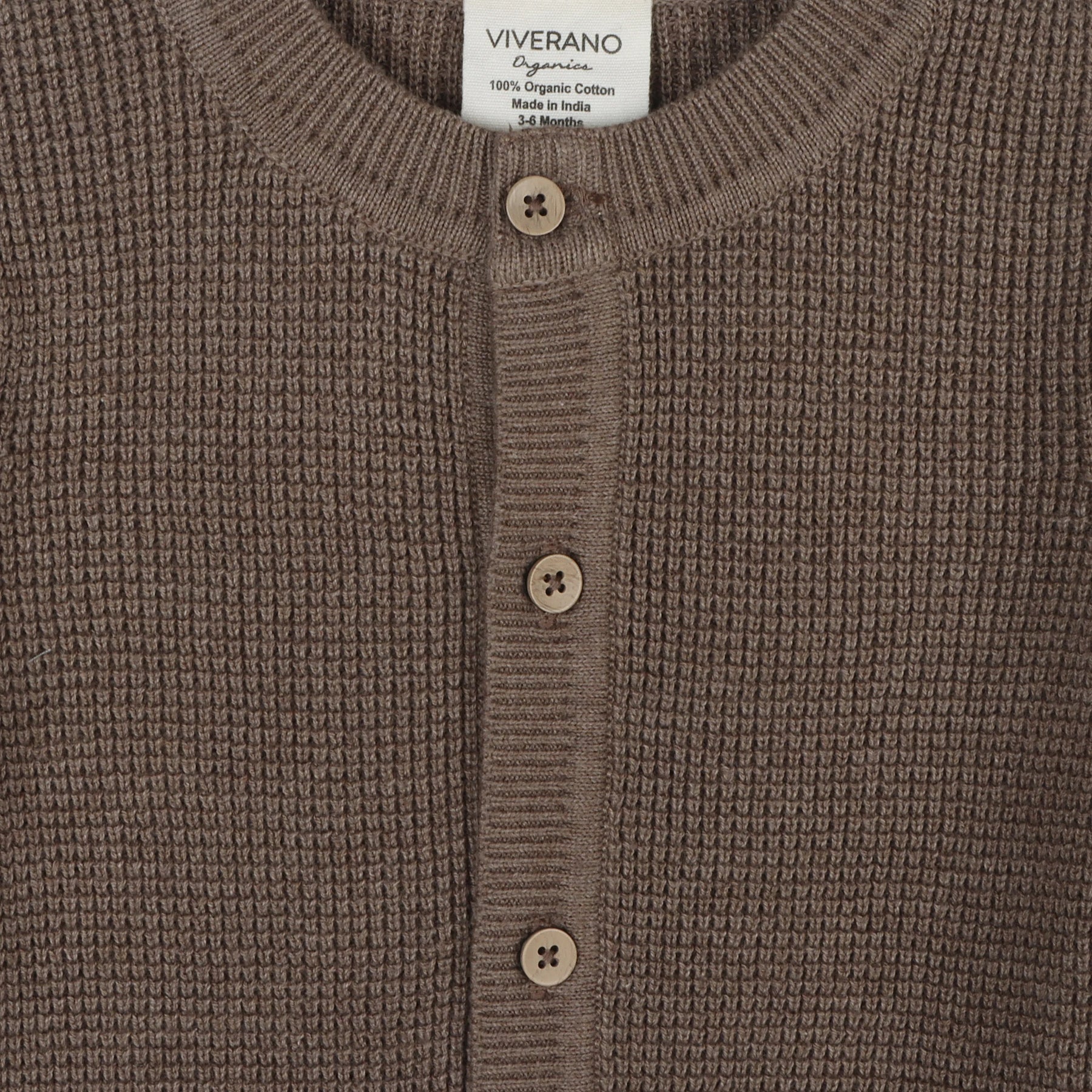 100% organic cotton baby sweater jumpsuit with a cute front pocket.