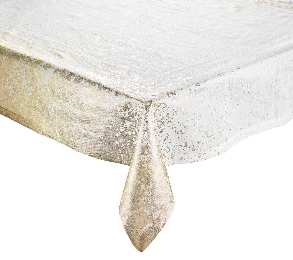 TABLECLOTH METAFOILWHITE & GOLD 108 x 52