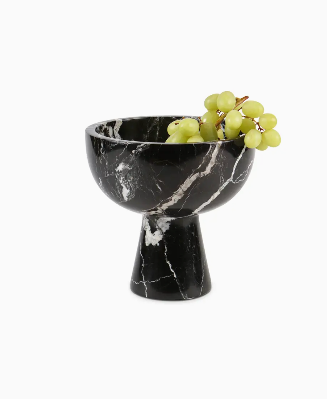 BOWL FOOTED BLACK ZEBRA MARBLE 8"