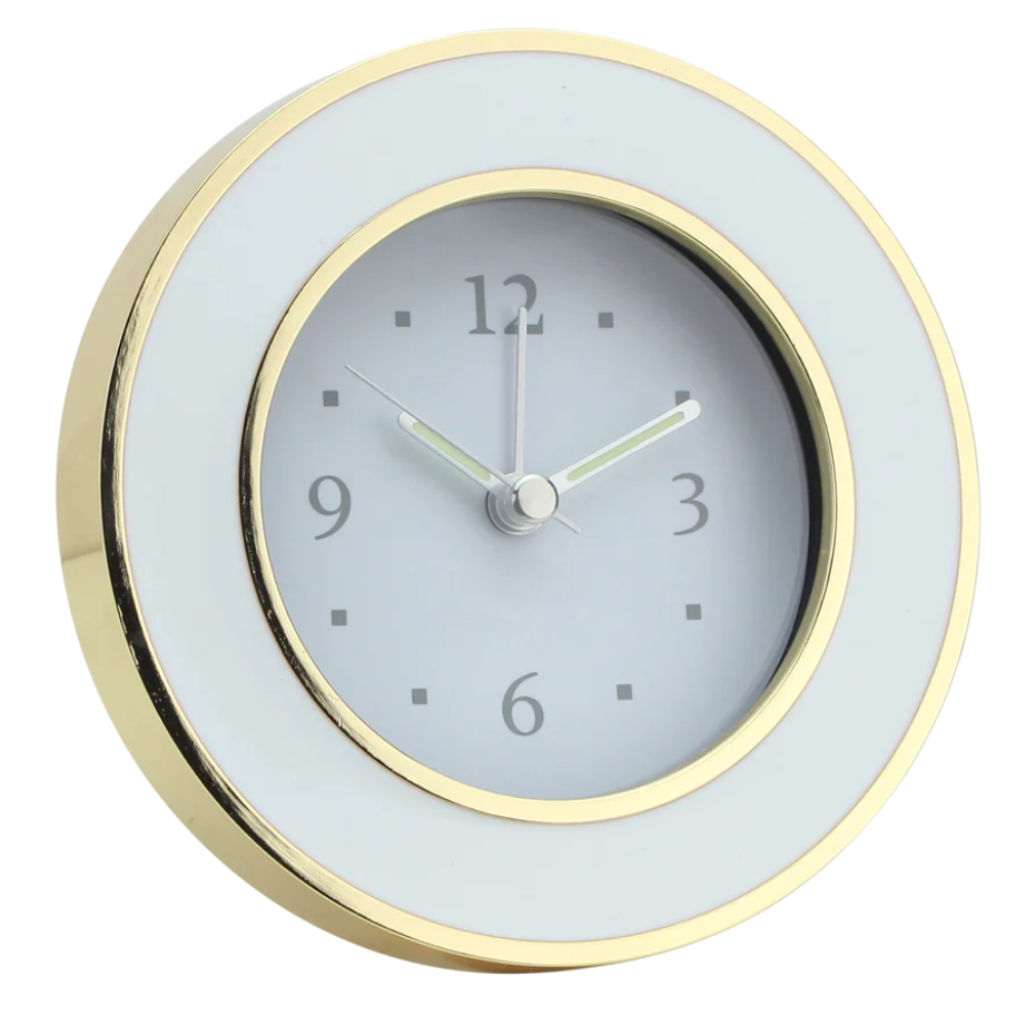 ALARM CLOCK WHITE & GOLD ROUND #40829