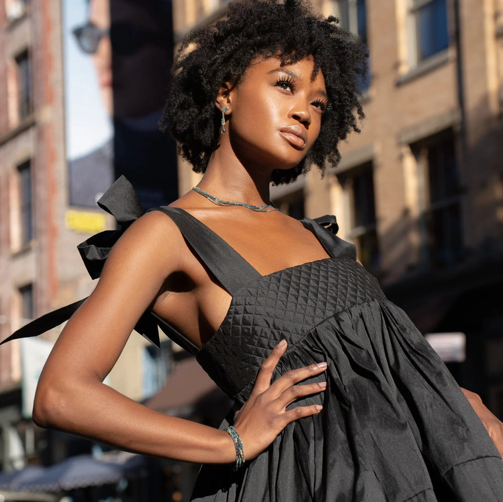 NECKLACE TRIPLE STRAND BEADED WITH GEMSTONE
