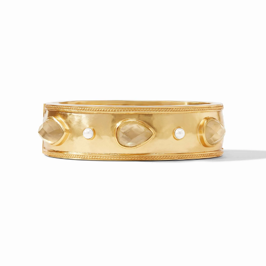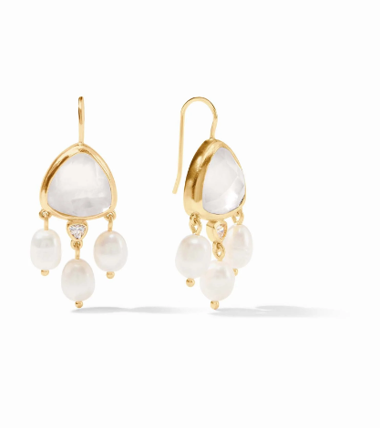 The jewelry is designed and handcrafted to the standards of fine jewelry. Made of semi-precious stones, pearl and imported glass, hand set in 24k gold plate over nickel-free brass and sealed to prevent tarnish.