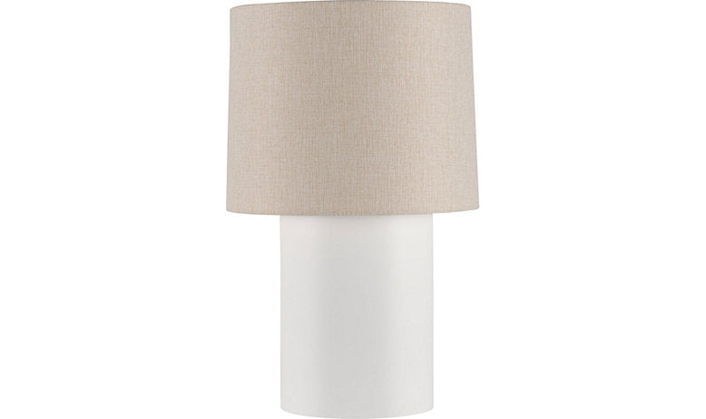 The Dias Cylinder Lamp is finished with a custom plaster that softens its glow and creates a calming effect in your space. Crafted by hand in Italy, the lamp features a textured linen shade atop its simple and modern base.