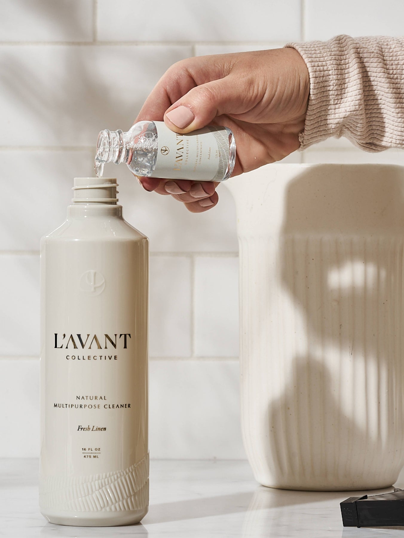 The perfect companion to your elegant l’avant spray bottle. With our multipurpose surface cleaner concentrate, refilling is a breeze. Eco-luxe glass bottles, going the refill route makes our powerhouse plant-based cleaner even more sustainable. Less plastic waste means you’re being gentler on the environment, and these compact beauties are easy to ship, easy to store. When it’s time for a refill, just add the concentrate to 15 oz. Of water in your original bottle, gently shake, and you’re back in business! Tackle any cleaning job and elevate the experience with our subtle natural fragrance.