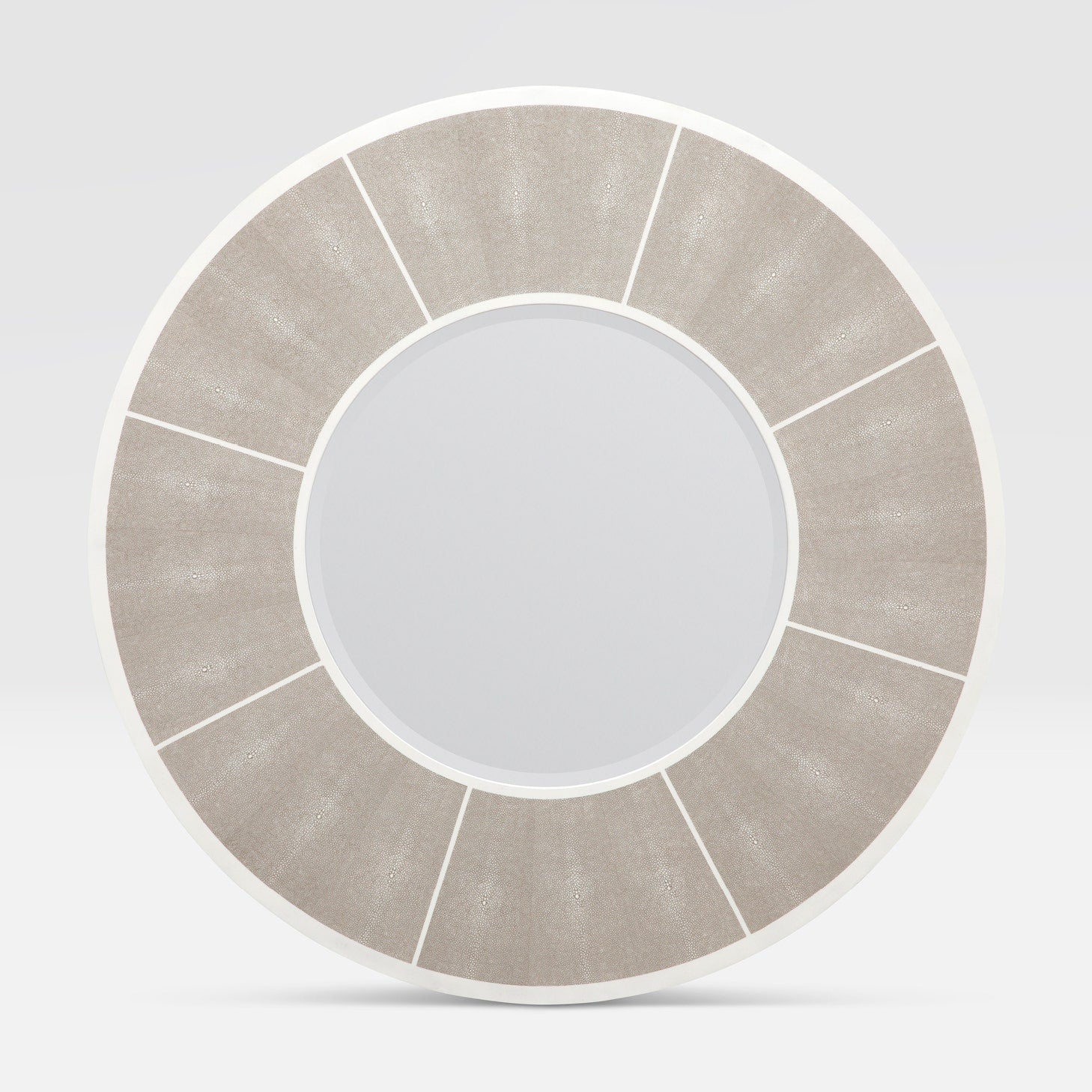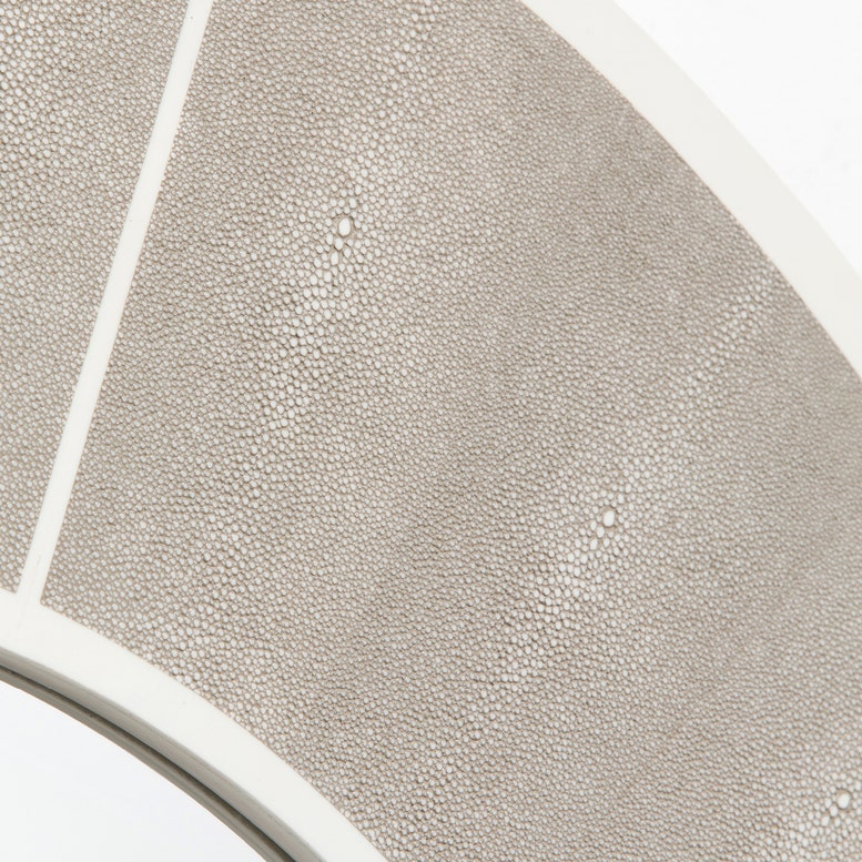 A luxurious faux shagreen finish offers a modern touch of refinement with the Meredith mirror. A circular resin mirror designed for a clean, fresh look.