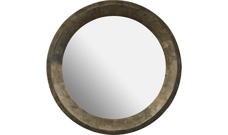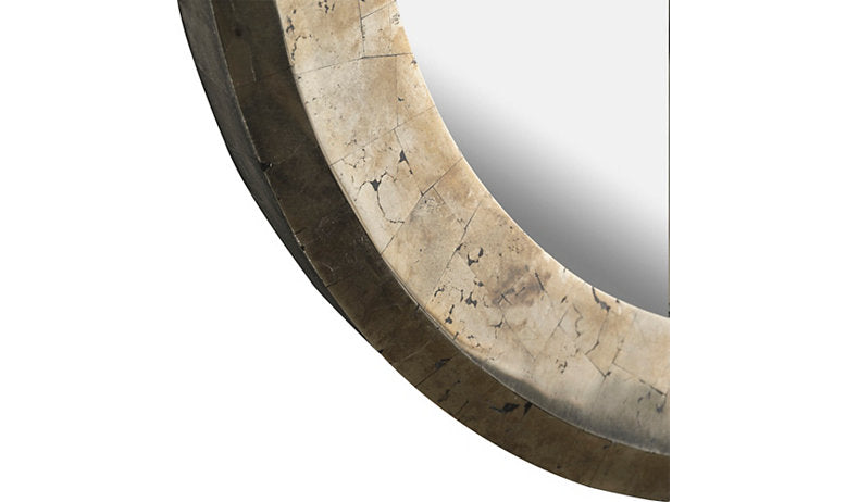 The Emery Mirror is moody and mysterious, with a perfectly round shape and a diffused, textured look that creates a unique presence in your space. Its metallic luster is inspired by the timeless allure of pyrite.