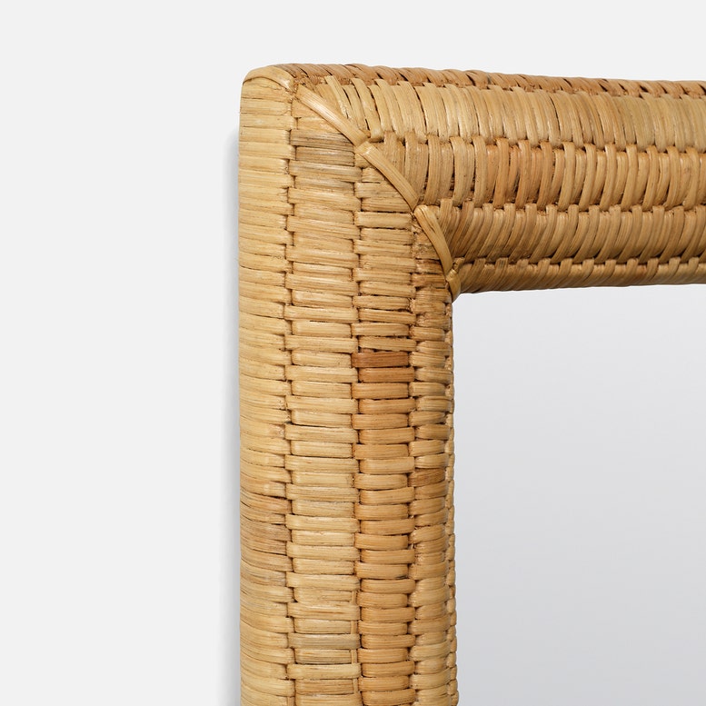 Made from rows of tightly bound rattan, Neya brings laid-back luxury to any space. Classic rectangular corners are contrasted by the border's curved layers of rattan. Natural variation to be expected.