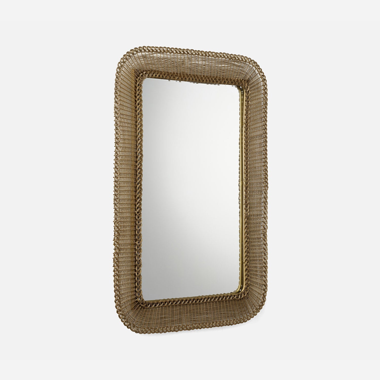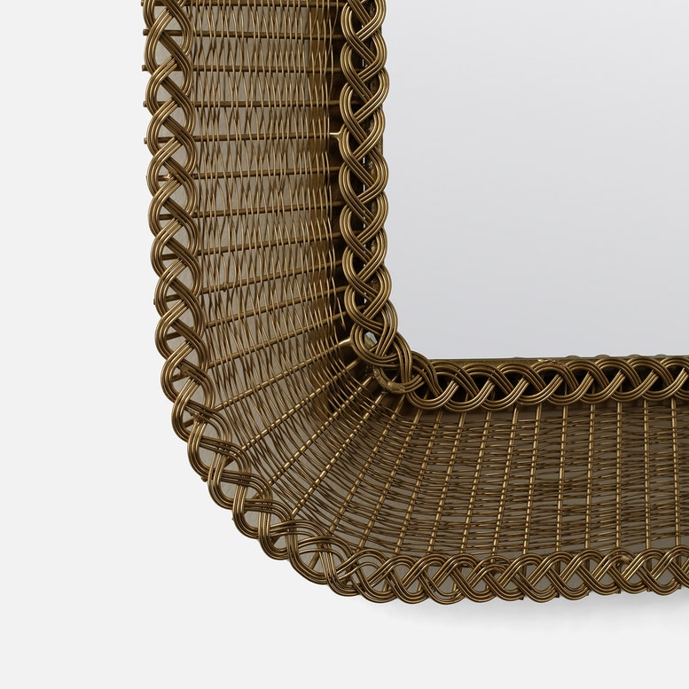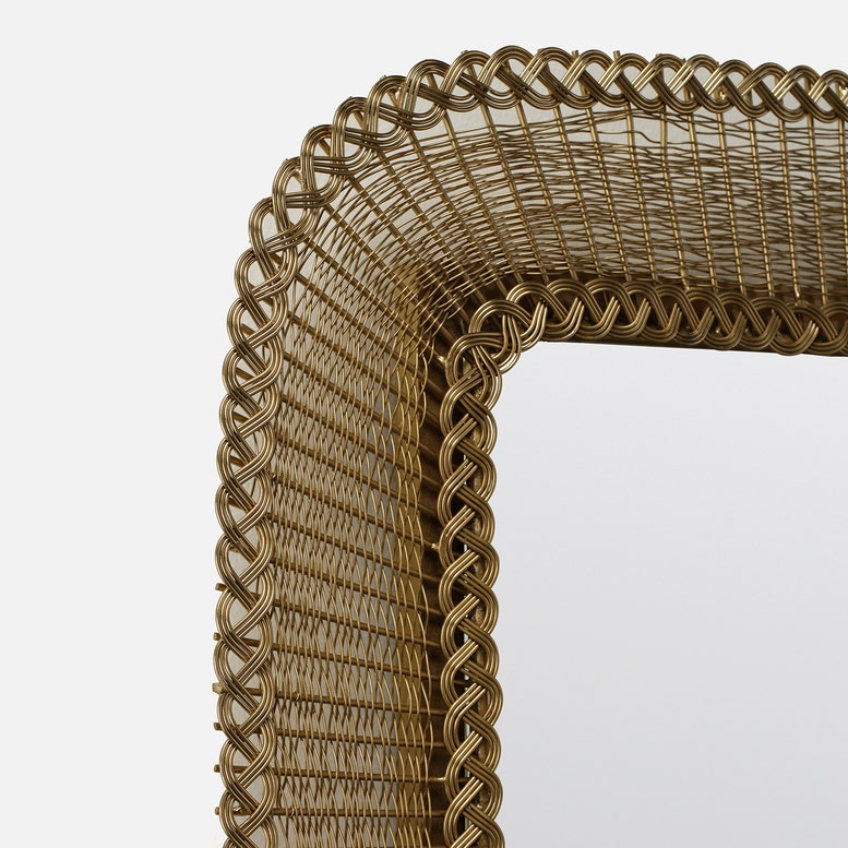 Odell is both an iron construction and a study in delicacy. Small intersections of fine, fishbone-like metal rods create rounded, soft corners and a mesmerizing rows of negative space.