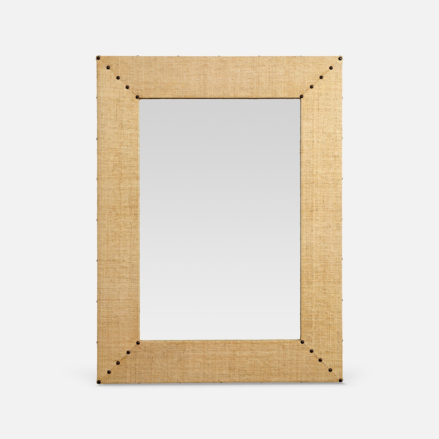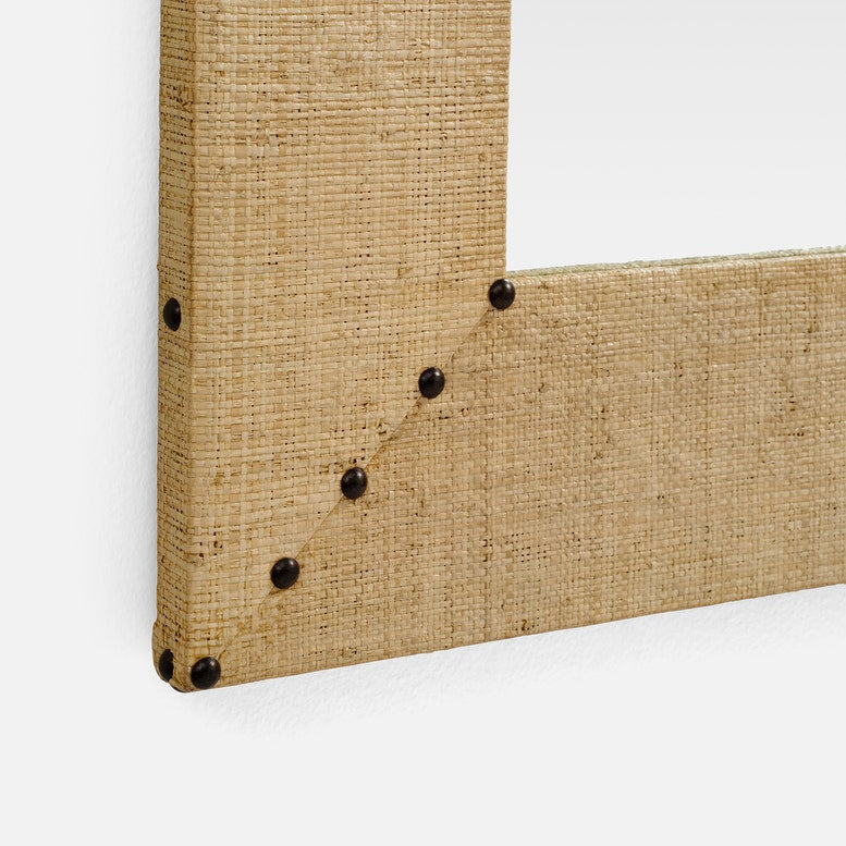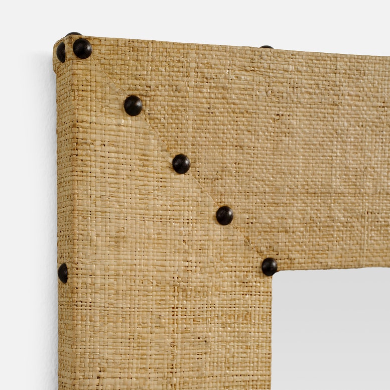 Boasting a vintage-inspired silhouette, the Sachin mirror delivers an air of subtle sophistication to any space. With its raw raffia frame and carefully placed grommets along the four corner seams, it's a timeless celebration of a natural texture. Please note that excessive moisture can cause the raffia to yellow over time. To avoid discoloration, it's best to keep this piece in a dry environment.