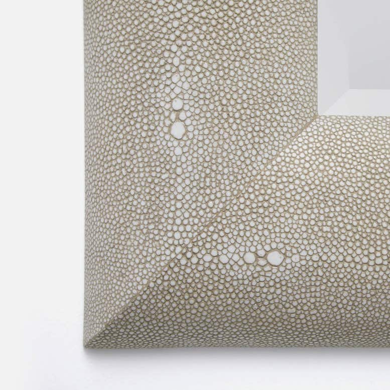 Our faux shagreen is realistic, compelling, and beautifully detailed without endangering the environment. The Sabine has a wide, domed border that highlights its meticulous handiwork.