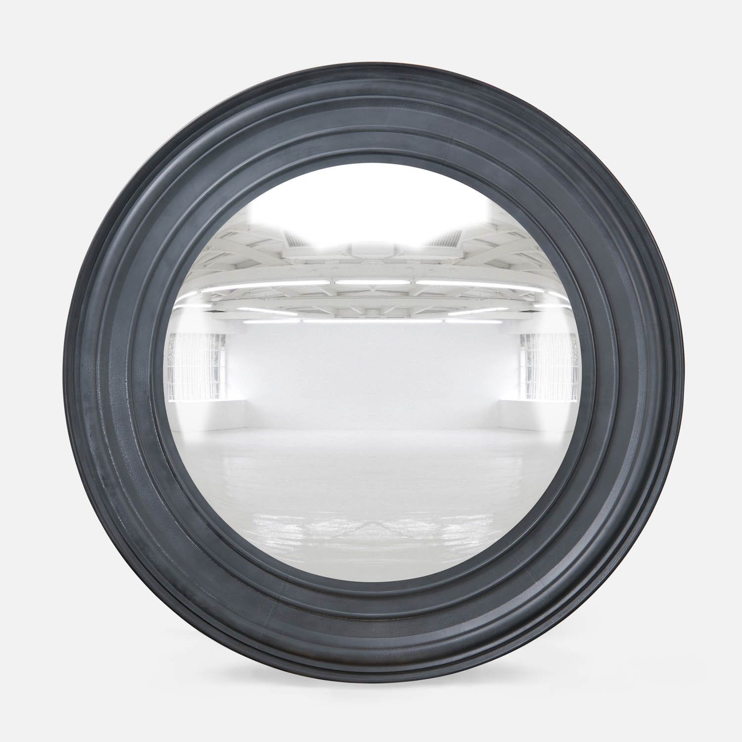 The Siddel features a large convex mirror surrounded by concentric circles of varying depths. The large border profile, approximately 3", makes a bigstatement. The aged gray version of the Siddel is topped with metal.