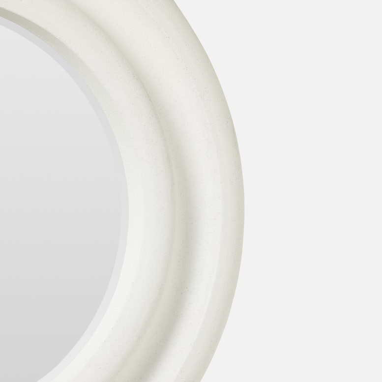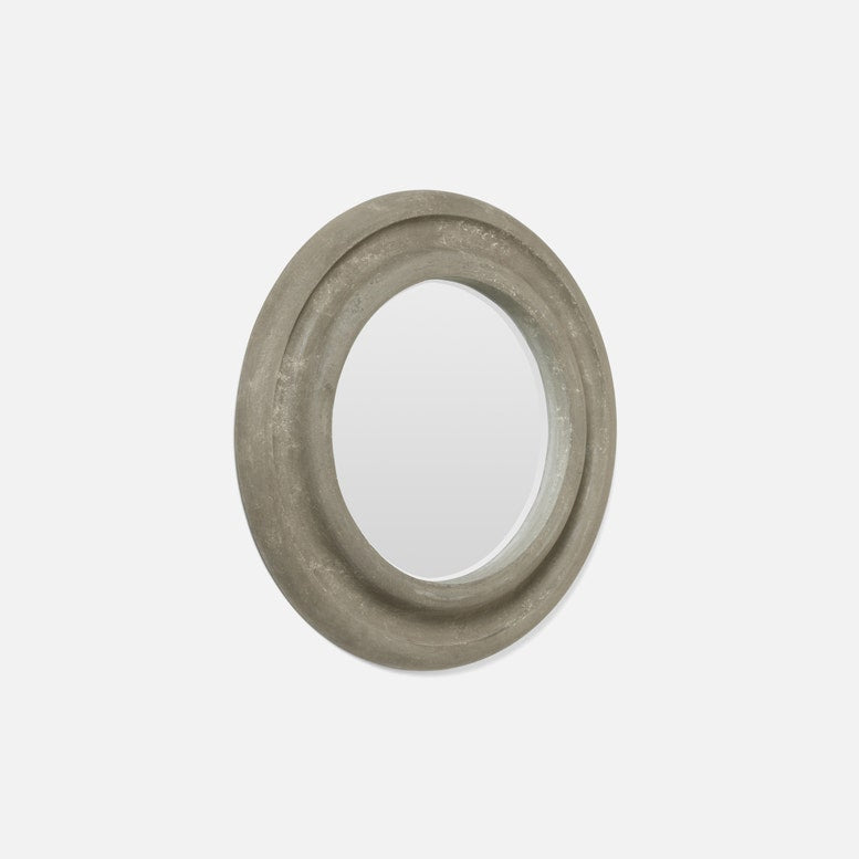Our Simone outdoor mirror features a deep rounded channel running through the center of its cast stone frame.