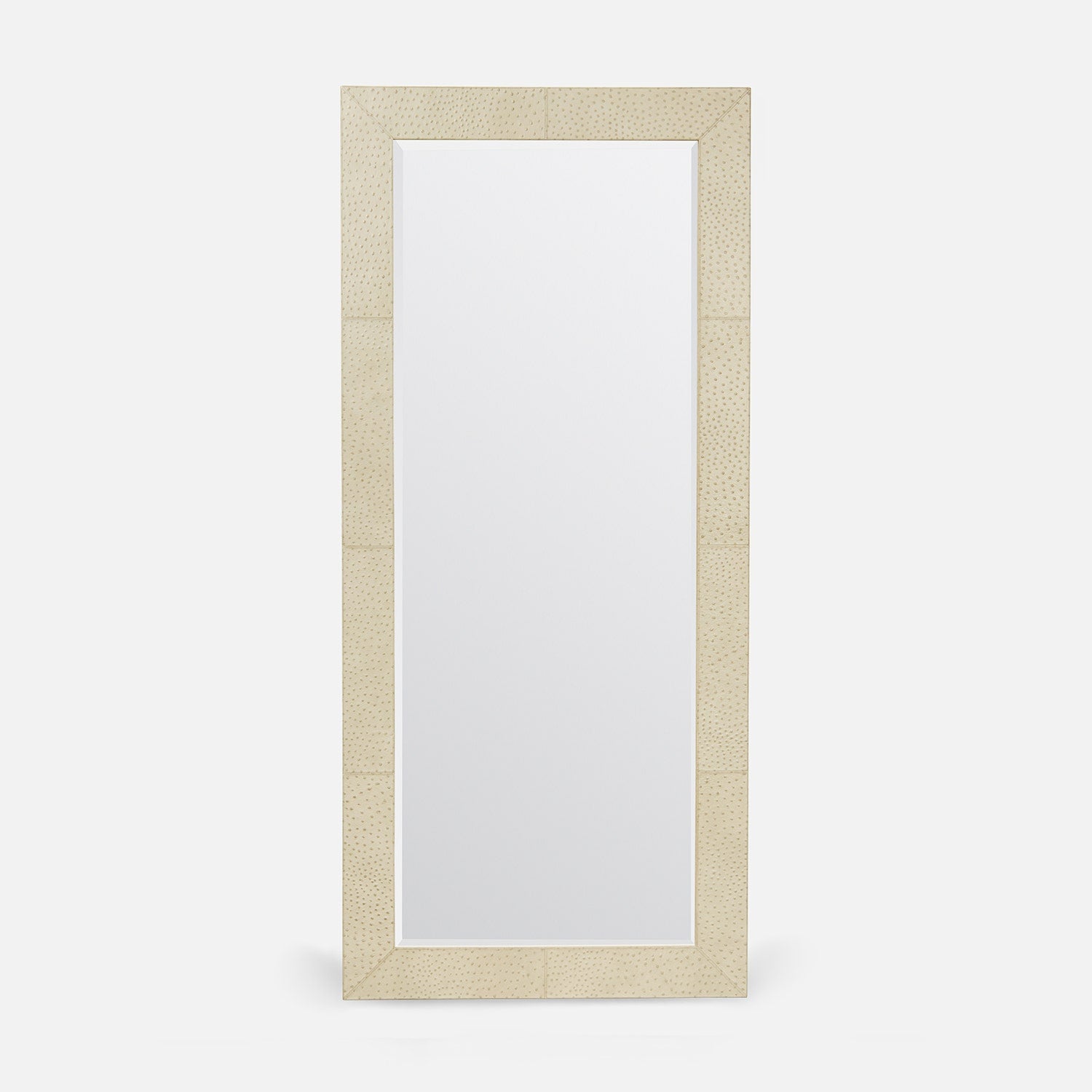 Real, full-grain leather is wrapped around a thick, dimensional rectangular frame. The leather is embossed in a dramatic and fun ostrich texture. Natural variations in this material may occur. Slight differences in color and texture are characteristics of this collection's aged full-grain leather. This durable, high quality leather may show inherent markings, distressed appearance, and variations in pattern.