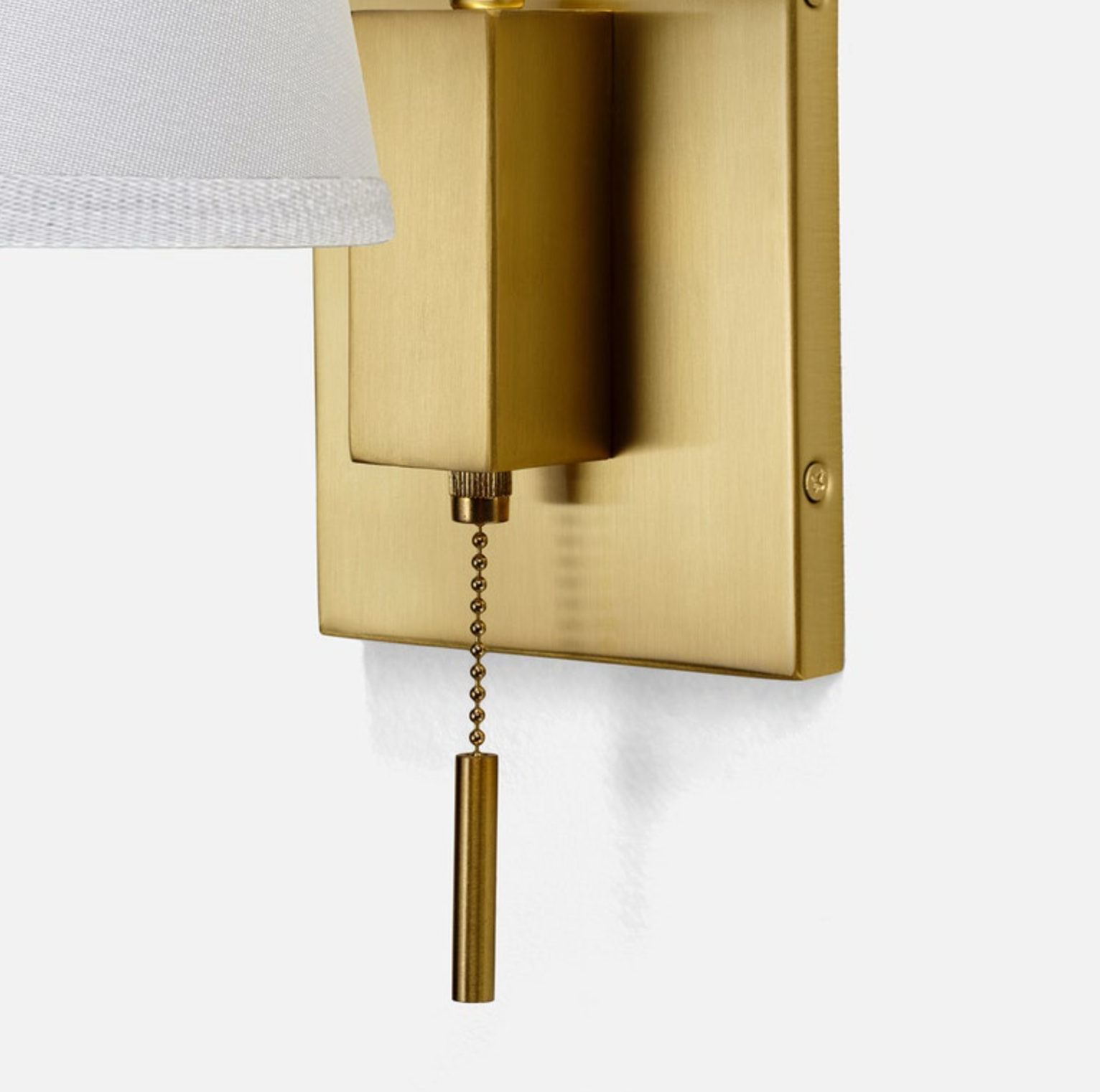 The Kenya sconces are a midcentury modern dream, featuring a sleek, angular metal base with a chic pull-chain pendant switch. A slim metal rod snakes upward and straight down to attach to a simple lampshade, perfect for reading or adding cool ambiance.