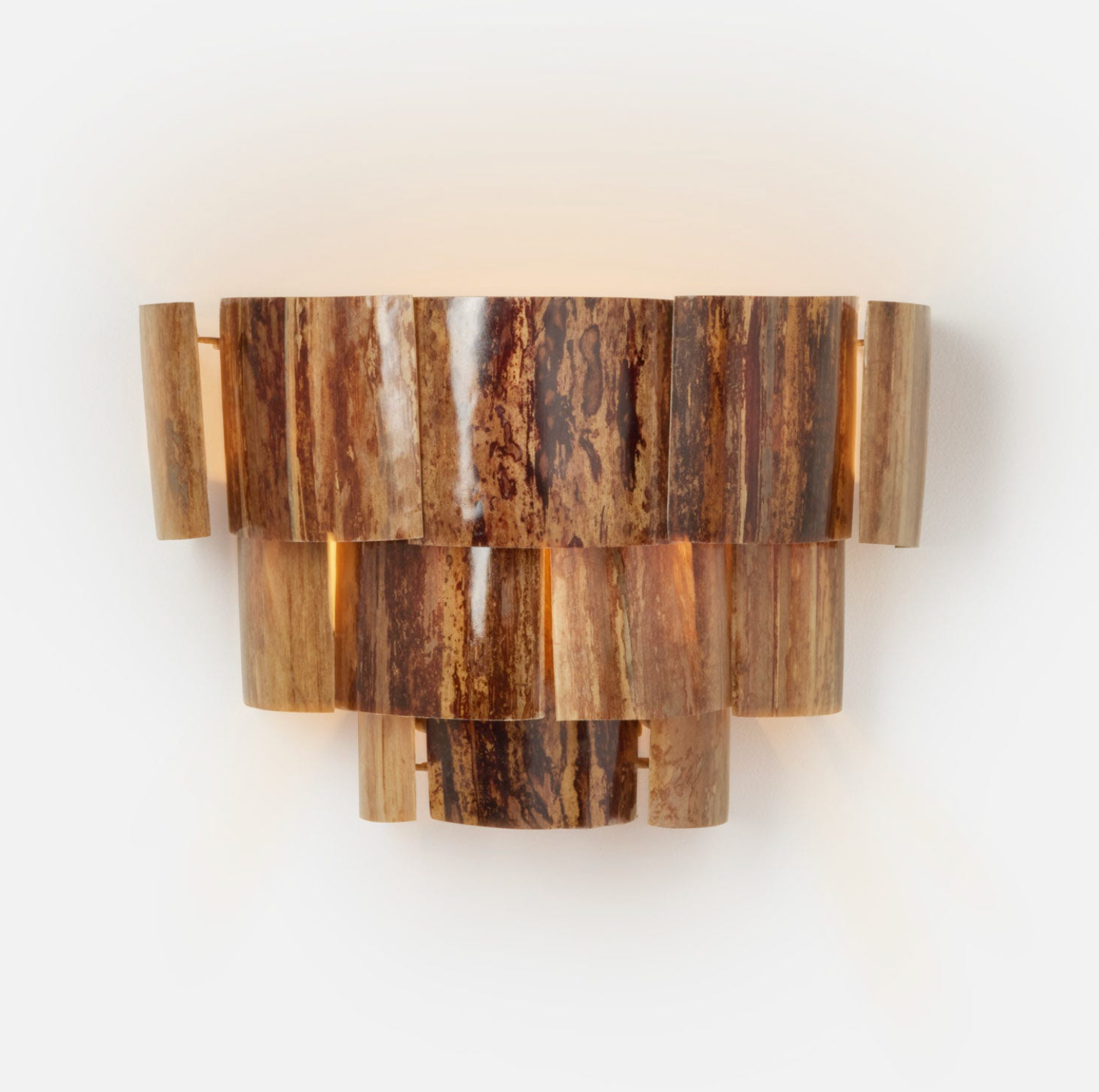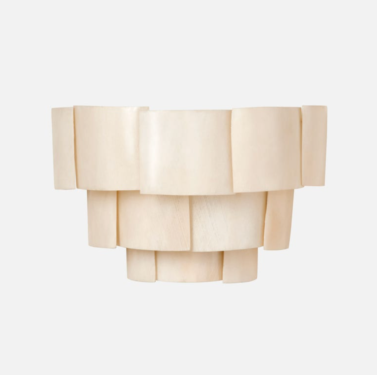 The organic and chic Marjorie sconce. Each three-tiered piece is handmade of banana bark layers coated in resin.
