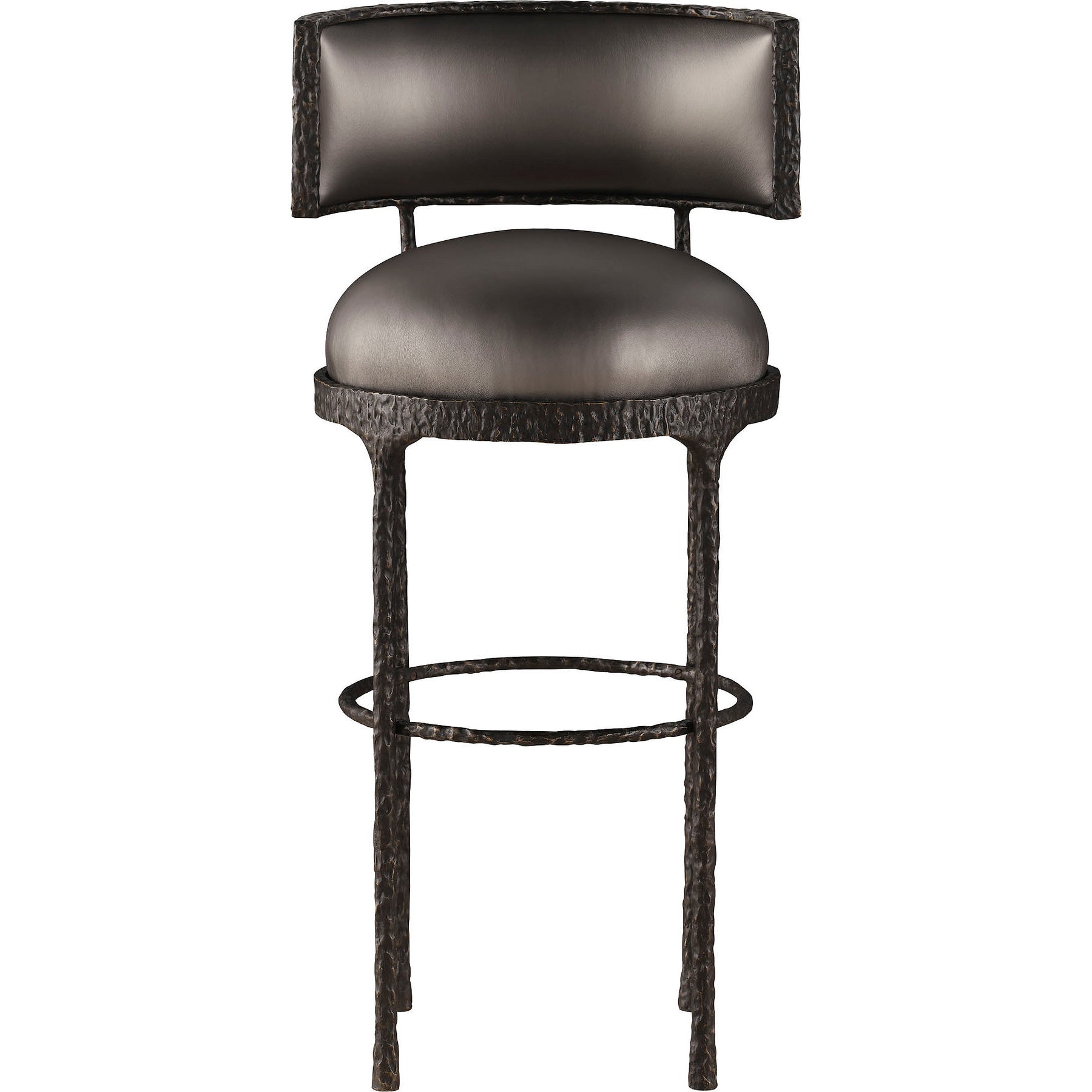 The Fira Barstool pairs a deep bronze plated finish on cast aluminum with sophisticated upholstery, evoking the elegance of the ancient Greek city that was lost to a volcanic eruption. This classic and fluid form displays the solidity of quickly cooled earth following a lava flow.