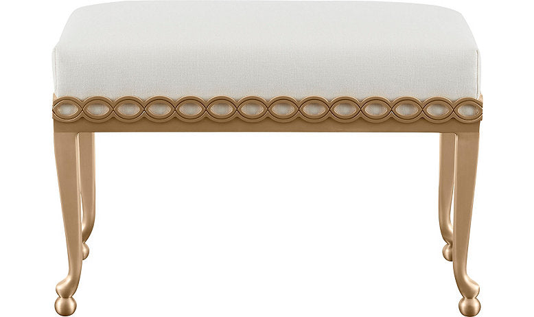 With a sinuous bronze frame and simple pin-cushion seat, the Infinity Petite Bench is an alluring piece inspired by delicate lace detailing.