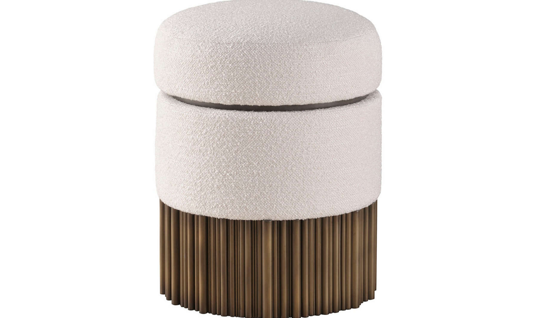 The design of the Teide Stool is inspired by Mt. Teide, an active volcano and the highest summit in Spain. Like the volcano itself, the foundation of the stool is meant to reflect the vertical bands at its base. By contrast, its top layer is represented by plush upholstery, offering both form and comfort. The base is crafted in bronze plated stainless steel in the Hraun finish.