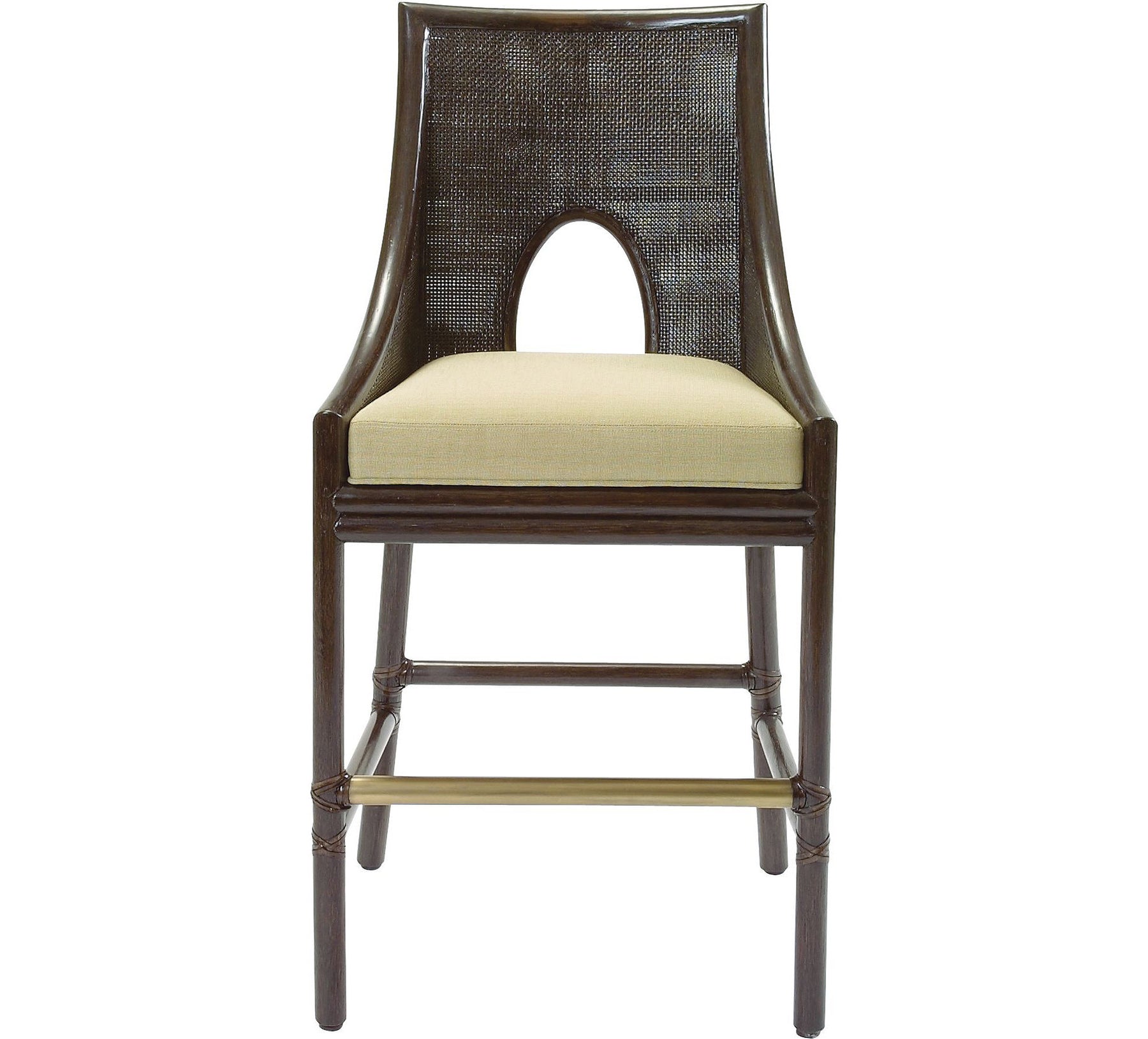 With a nod to the collection's signature look, the Barbara Barry Caned Bar/Counter Stool features square mesh caning framed in rattan and accented by the collection's signature half-oval, cutout detail. Rattan armrests that start at the low backrest, gently curve downward to join the front legs, accented by a bronze foot rail.